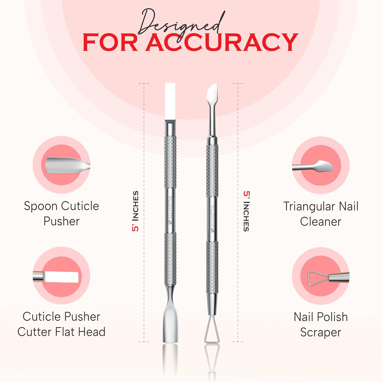 - โ Premium Stainless Steel Craftsmanship: Built with upgraded polished stainless steel, this professional 5-in-1 cuticle trimmer set includes a cuticle trimmer, cuticle pusher, cuticle cutters for nails, nail scraper and gel remover. Sharp, rust-resistant, and long-lastingโperfect manicure tools for fingernails, dead skin, and cuticle maintenance.