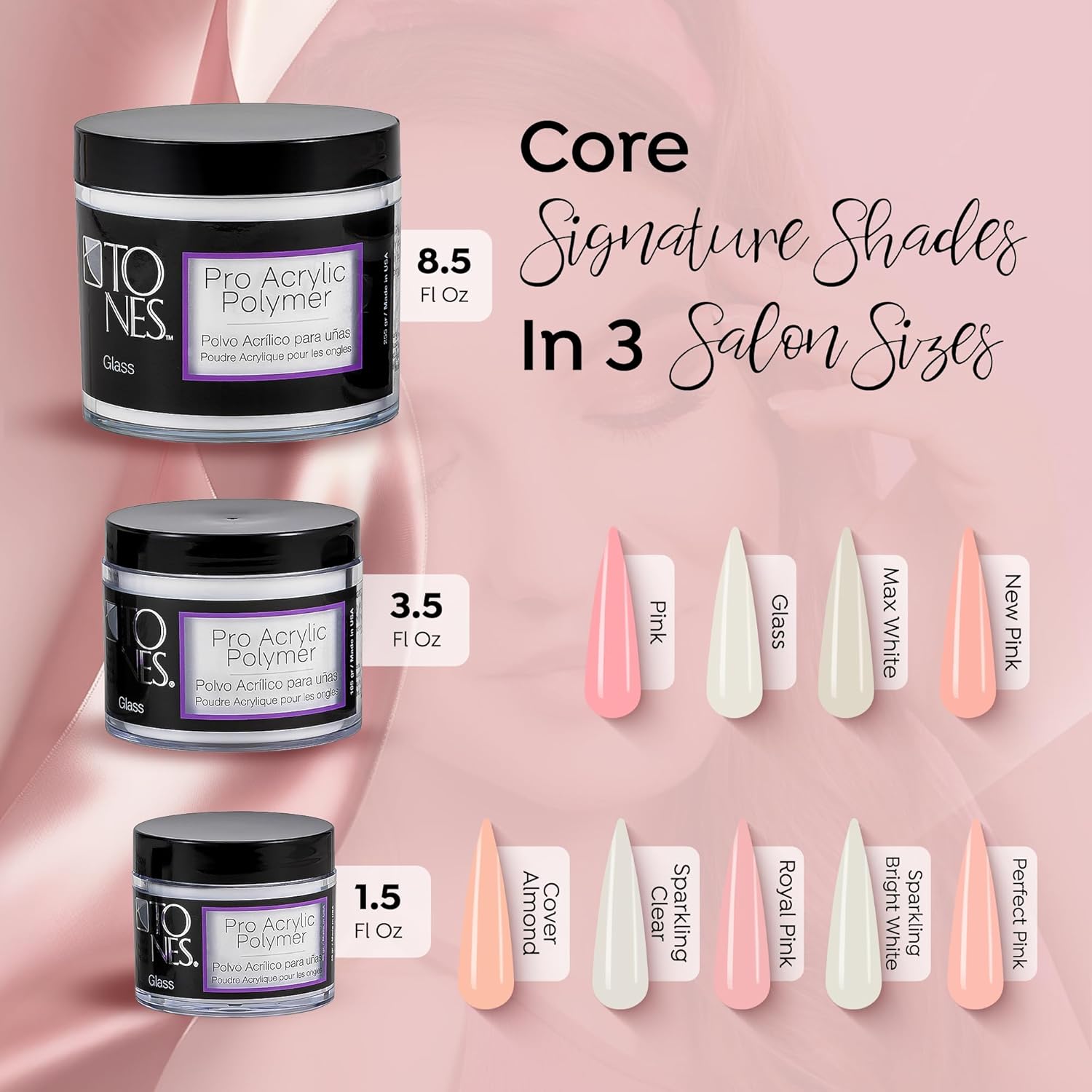 Tones Pro Acrylic Nail Powder, Glass (Clear), (1.5 Fl Oz) - Long-Lasting & Non-Yellowing Polymer for Salon Quality Nail Extensions & 3D Art