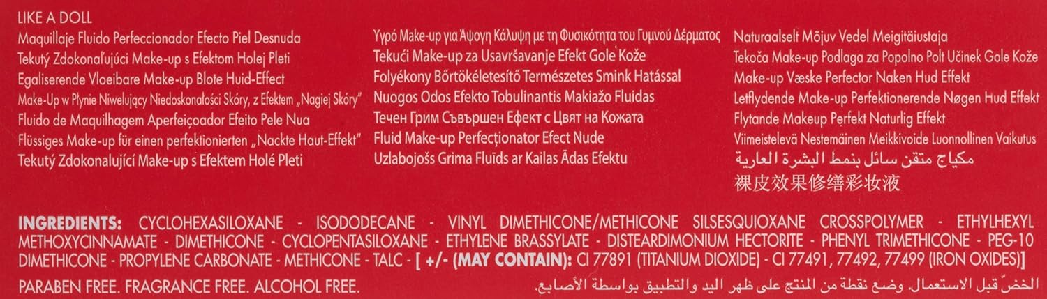 - LIGHT AND SENSORY. The weightless texture feels silky smooth on your face and dissolves into skin for an outstanding naked skin effect for a flawless appearance. The comfortable formula absorbs without feeling gritty or harsh on your skin.