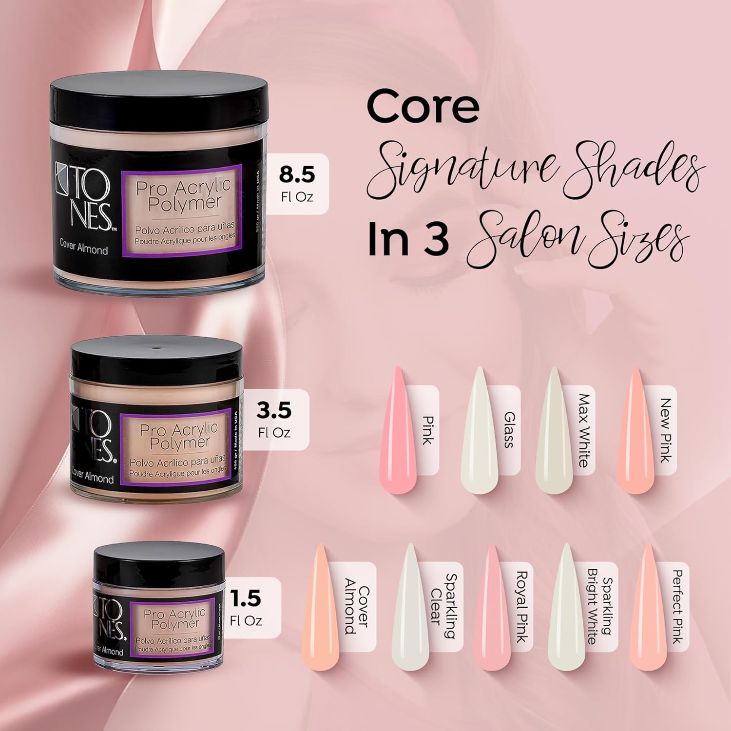 Tones Pro Acrylic Nail Powder, Cover Almond (Soft Nude Beige), (3.5 Fl Oz) - Long-Lasting & Non-Yellowing Polymer for Salon Quality Nail Extensions & 3D Art