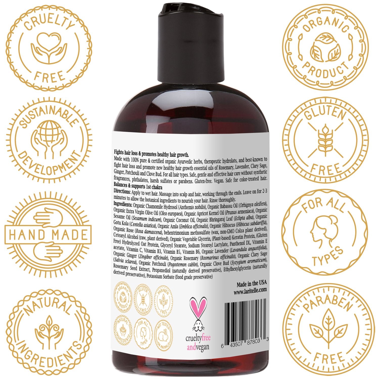 - ✿ Safe travels! ORGANIC CONDITIONER TO STOP HAIR LOSS & PROMOTE NEW HEALTHY HAIR GROWTH. Softens hair, nourishes the hair-shaft, rejuvenates hair follicles. Made with certified organic Babassu, Olive, Apricot Kernel oils and Ayurvedic herbs, therapeutic hydrolats, and best known to stop hair loss and promote new healthy hair growth essential oils of Rosemary, Lavender, Clary Sage, Ginger, Patchouli and Clove Bud.