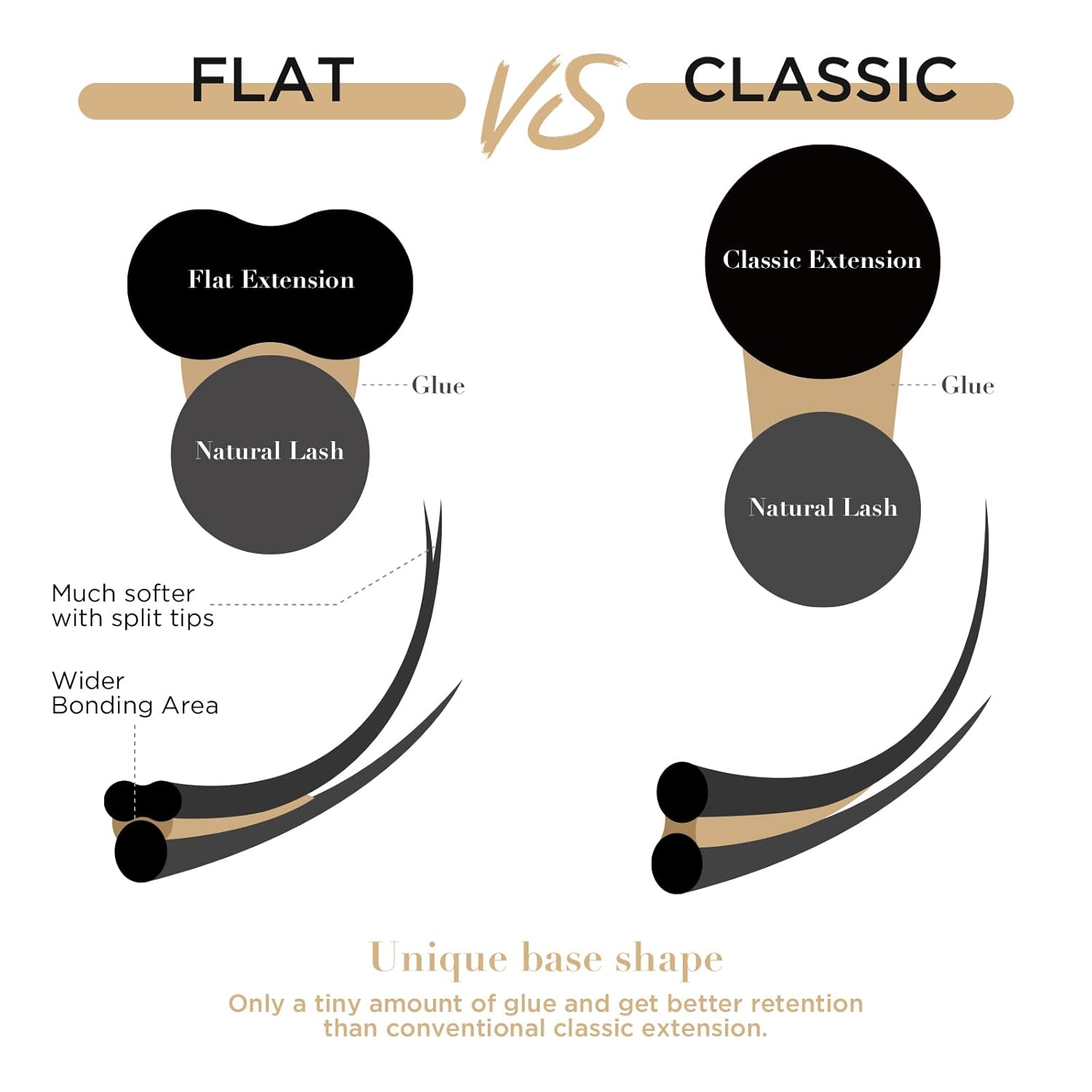 - 【50% WEIGHT】The flat lash extensions have unique split tip of their tail,which makes a flat lash is equal to the density of two round individual eyelash extentions,but the weight is only half,which can quickly create eyeliner grafting