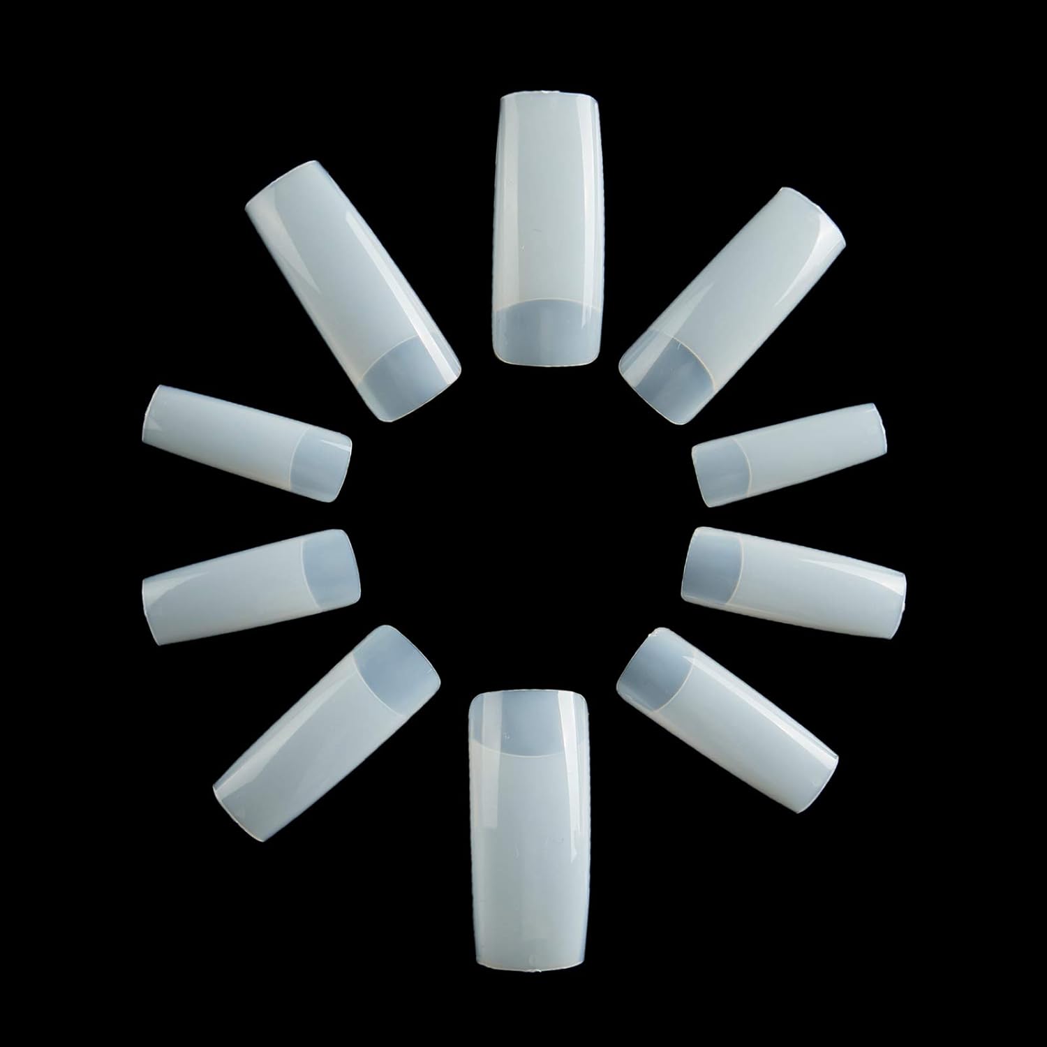 - Half-covered false nail tips, 500pcs nail tips, 10 different sizes, stored in numbered case with 10 small grid.