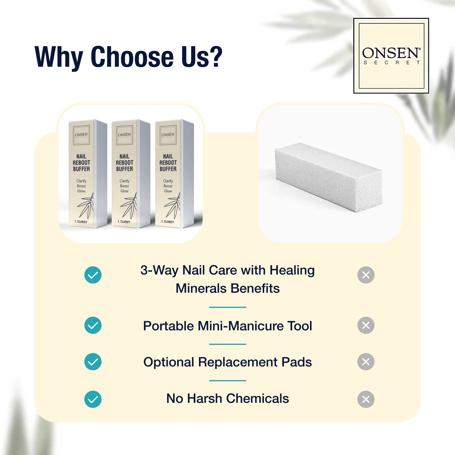 Onsen Secret Professional Nail Buffer Block | 4-Way Buffing for Natural Shine & Healthy Natural Nails - Includes 2 Extra Shine Pads, Salon-Quality, Post-Gel & Acrylic Recovery | 3 Pack