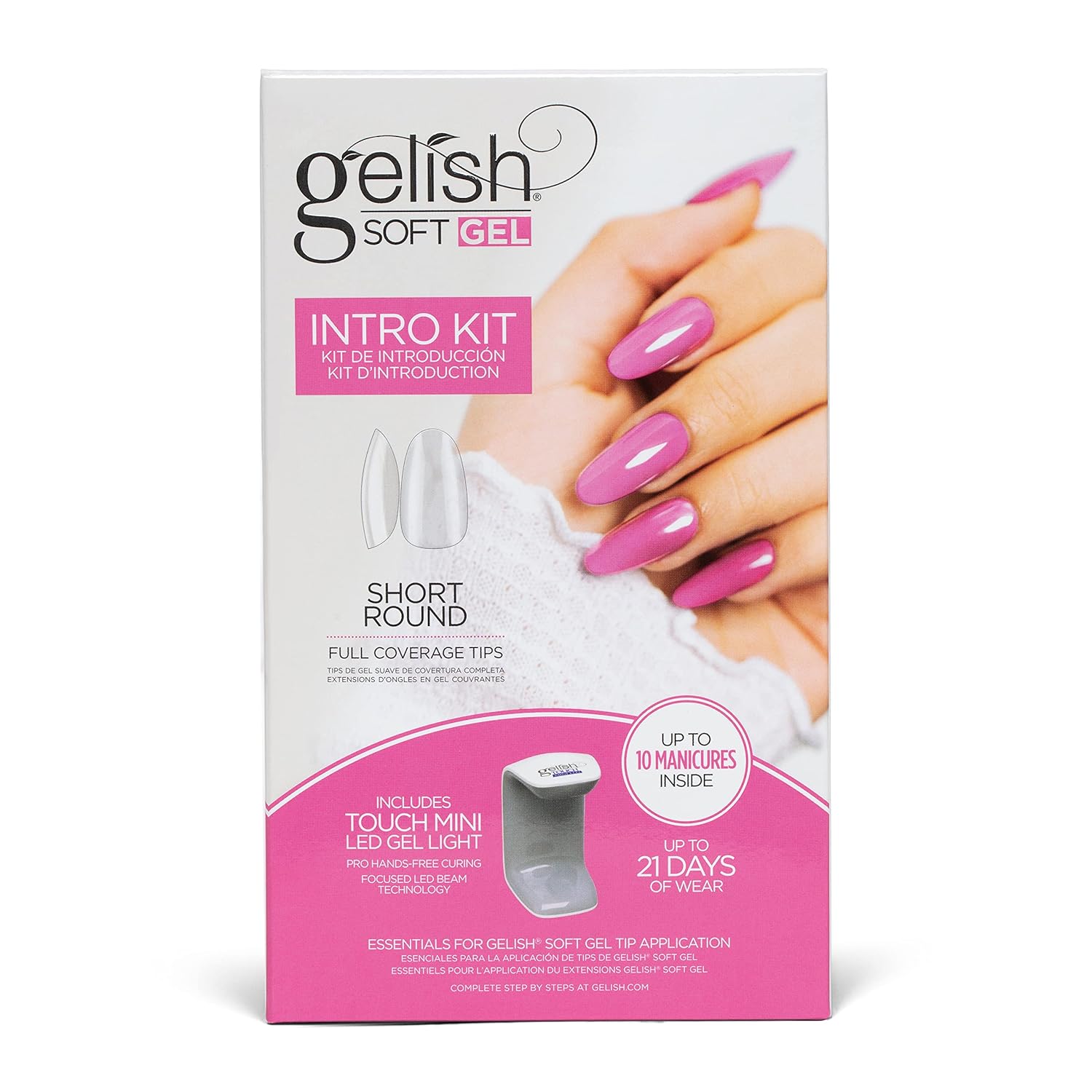 Gelish Soft Gel™ Intro Starter Kit – Full Coverage Press On Tips, LED Nail Lamp, Long-Lasting, Fast Application, No Chip, At-Home Gel Nails, Easy to Use (Short Round Kit)