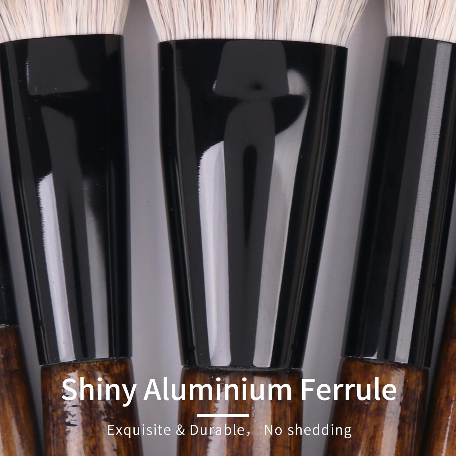 Natural Goat Hair Makeup Brush Set with Case, Natural Makeup Brushes, Natural Bristle Makeup Brushes, Natural Hair Makeup Brushes Set Professional, Walnut Cosmetic Brushes Makeup Set - MONI