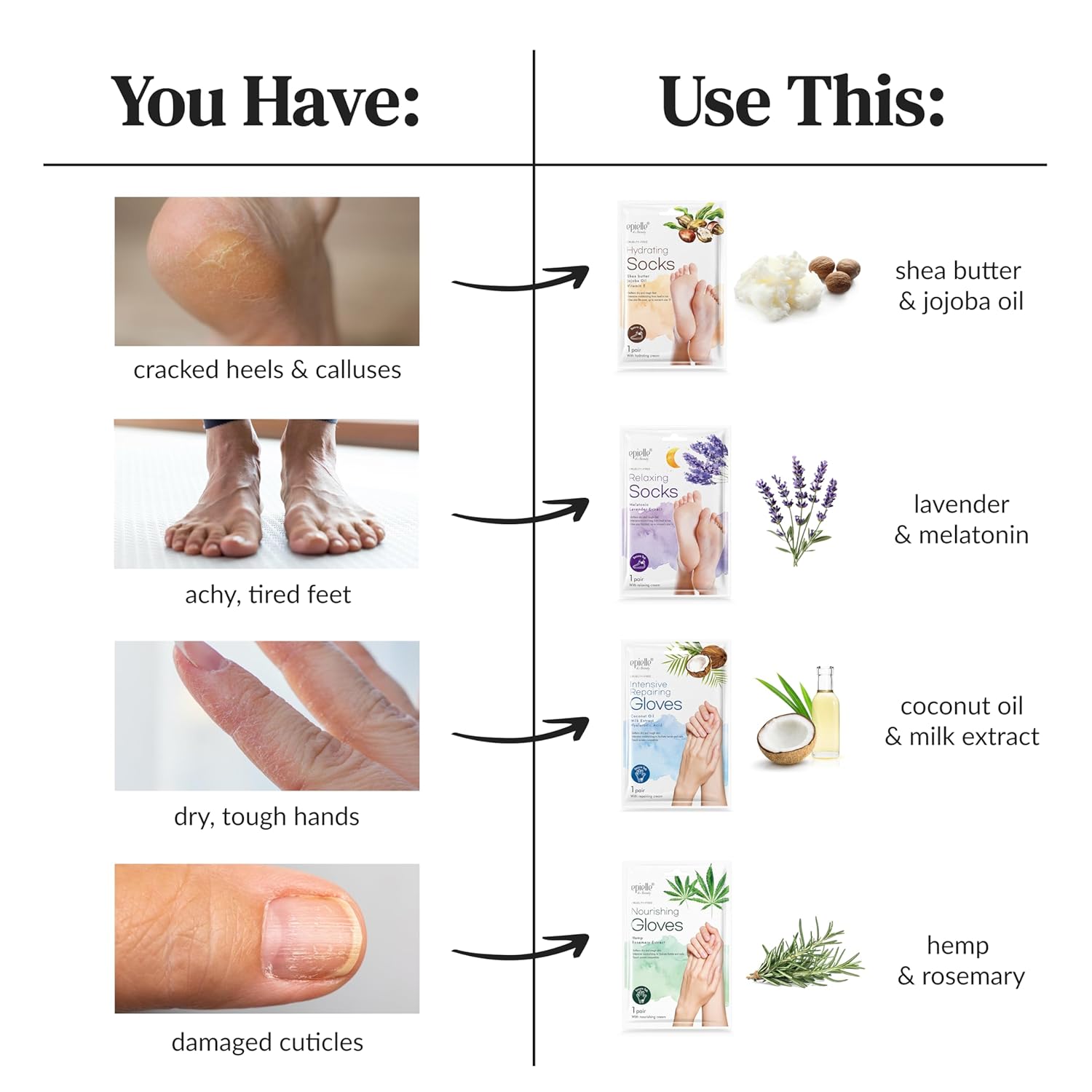 - Visible Results in 15 Minutes: Delivers instant relief to rough, dry skin. After just one treatment, our foot masks moisturizing socks leave skin softer, smoother, and more comfortable.