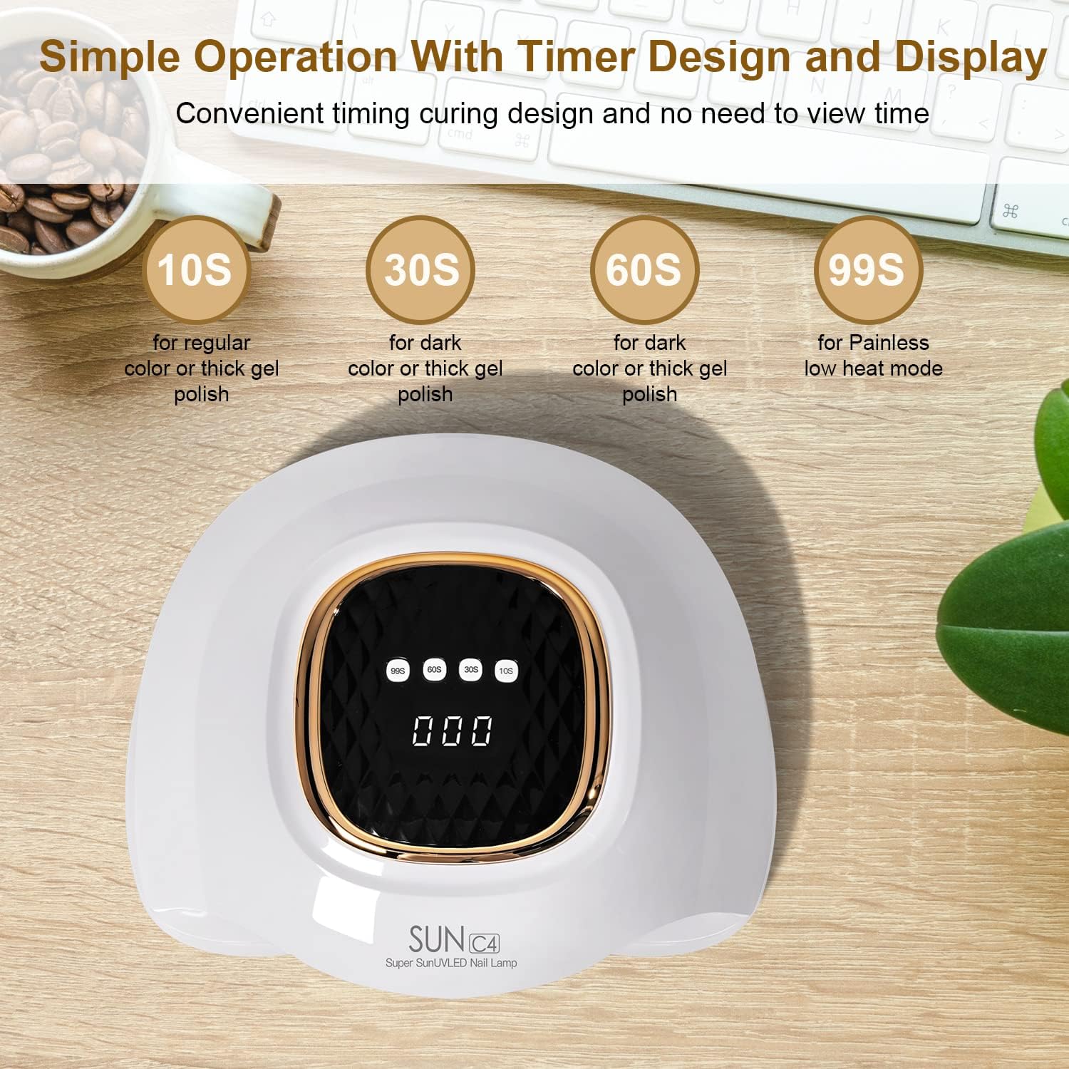 • Featuring 4 timing settings and an infrared automatic sensor, this nail lamp offers customizable and hassle-free operation.