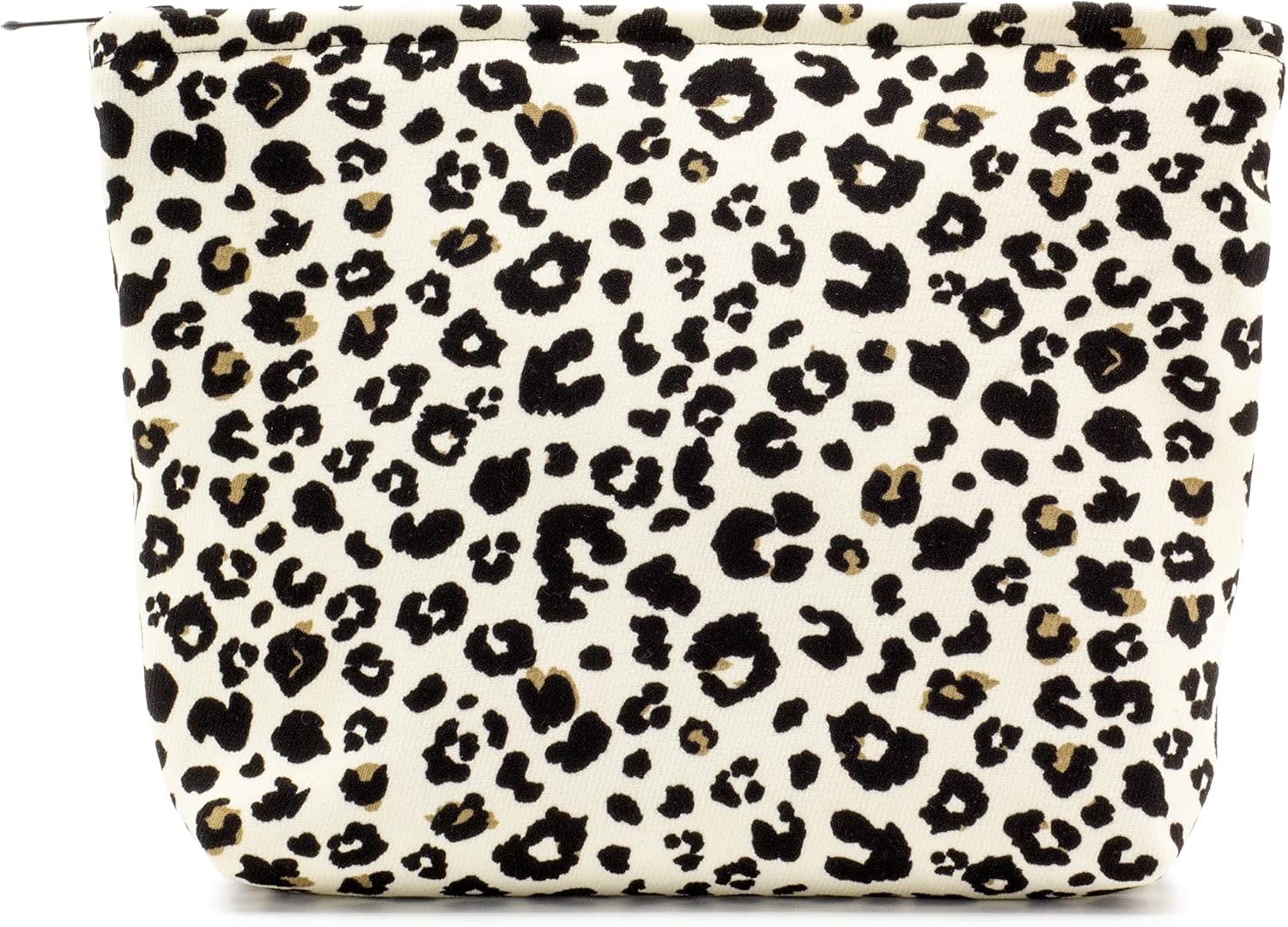 Makeup Bags for Purse Zipper Cosmetic Pouch Large Travel Canvas Make Up Organizer Tool Pouch for Women and Girls,Leopard Ivory