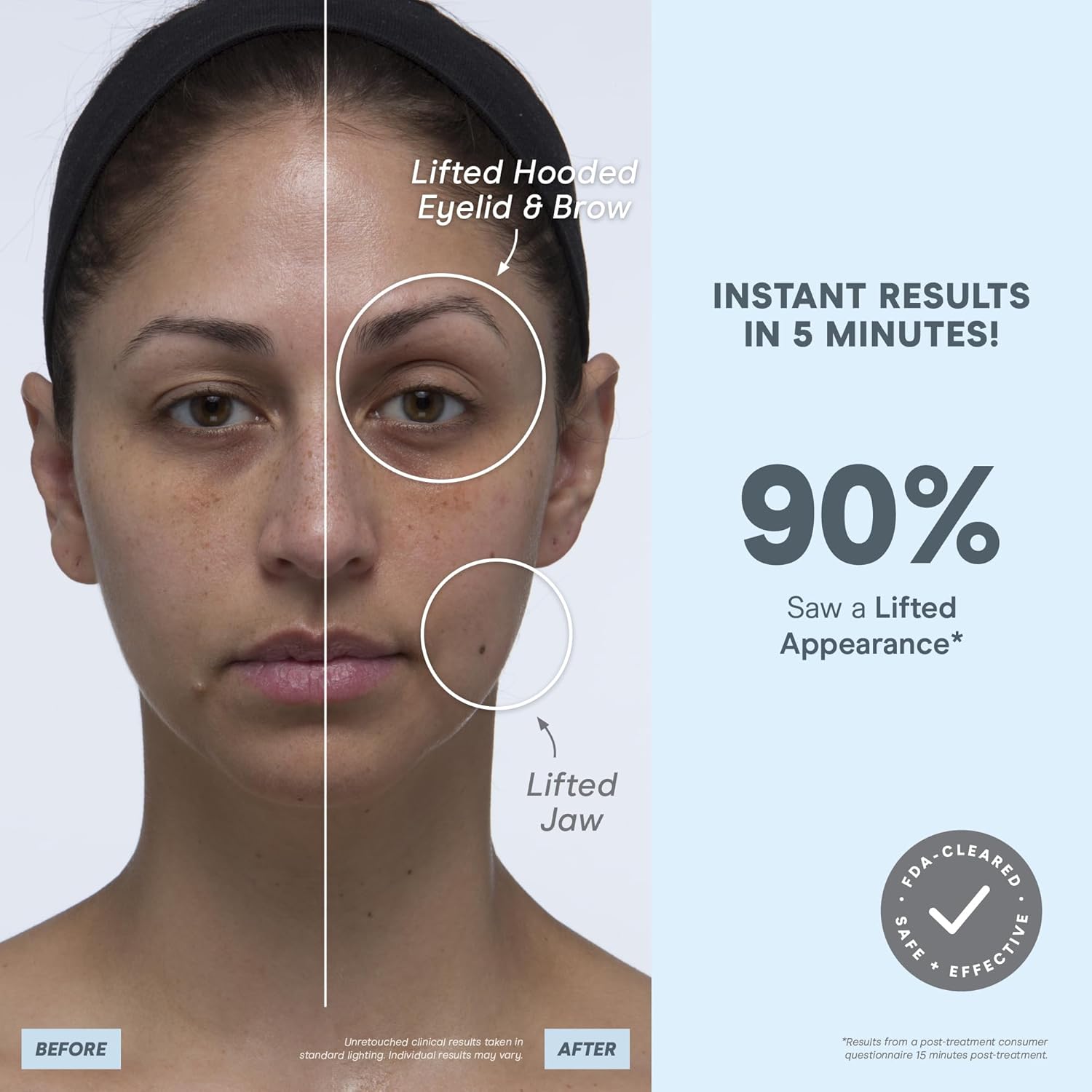 - Instant & Lasting On-The-Go Results - The petite and portable design of your NuFACE MINI+ facial toning device makes it perfect for on-the-go lifting. Quick 5-minute sessions throughout the week help to sculpt and firm the face & neck, improve cheek contour, lift brows, and smooth fine lines and wrinkles. 95% of users say they saw improvement in the appearance of sagging skin around the neck, 90% saw a more lifted jaw appearance, and 93% saw a reduction in the appearance of deep forehead lines.