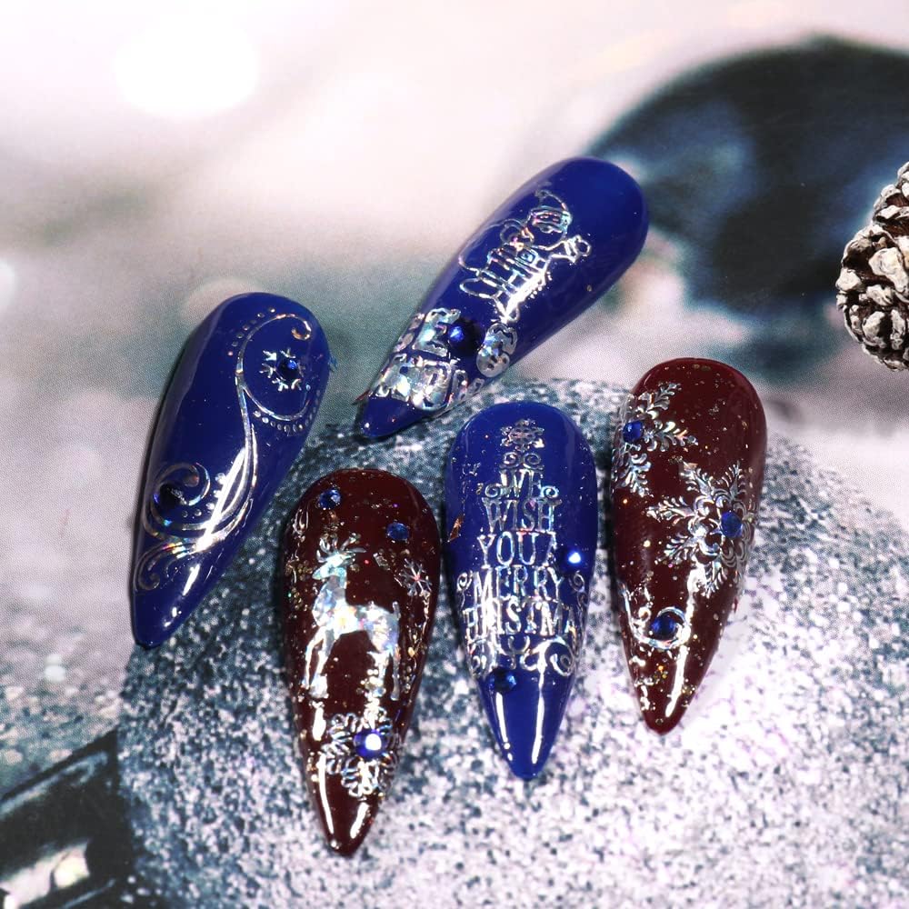 9 Sheets Merry Christmas Nail Art Stickers Decals Self-Adhesive Holiday Snowflakes Laser Silver Snowman Bell Nail Supplies Nail Art Design Decoration Accessories