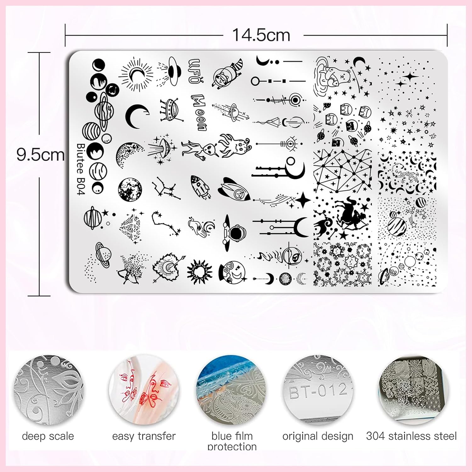 - 【High Quality】The nail art stamper kit are made of high quality 304 stainless steel and protected by a transparent blue film from scratches and damaged, enough durable and sturdy to long use.