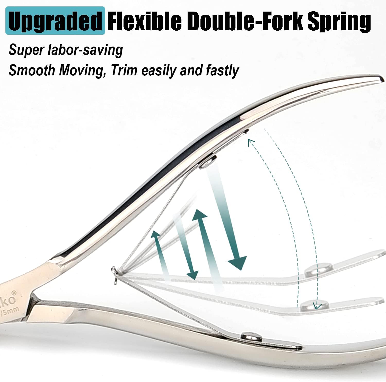 - Super Labor-saving & Avoid Wrist and Shoulder Pain - Ergonomic designed 20 degree jaw and flexible double-fork spring provide labor-saving cutting and smoother moving, No need to lift up arm or bend wrist, perfect designed clippers for Manicurist.