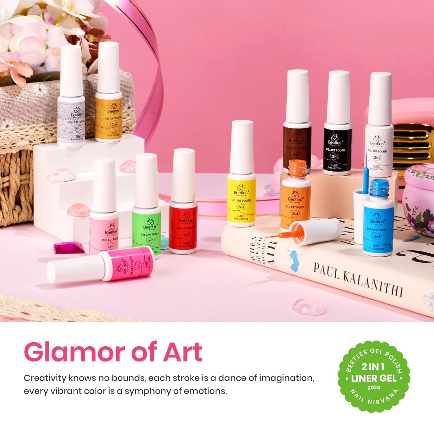 - 【2 IN 1 Top Coat X Liner Gel】:Beetles new upgraded 12 color gel nail art polish set, upgraded original formula, extra pigmented, one stroke glossy finish, requires no top coat after color. Not only can be used as color gel polish, but also can be used for nail tracing, filling, outlining, waves, lines, French, nail painting, etc. Create unlimited possibilities.