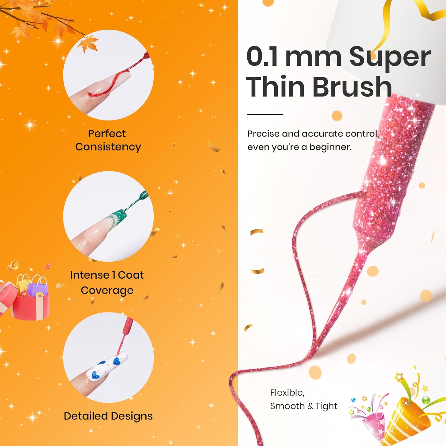 - 【Reflective Glitter Gel Shining in Dark】: The glitter gel nail polish of liner gel polish will show very bright and intensive little sparkle spots through the light refraction at night. Whether it's a dazzling party, a happy reunion, or a festive celebration, the gorgeous charm you like is all here.