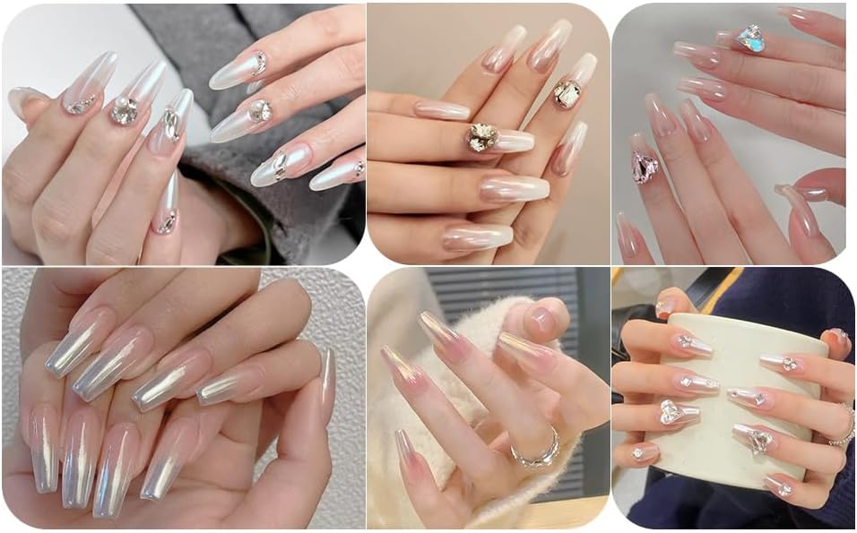 • 【PACKAGE CONTENTS】:1 PCS White chrome nail mirror pearl pigment powders.It needs to be used with gel nail polish and no wipe top coat