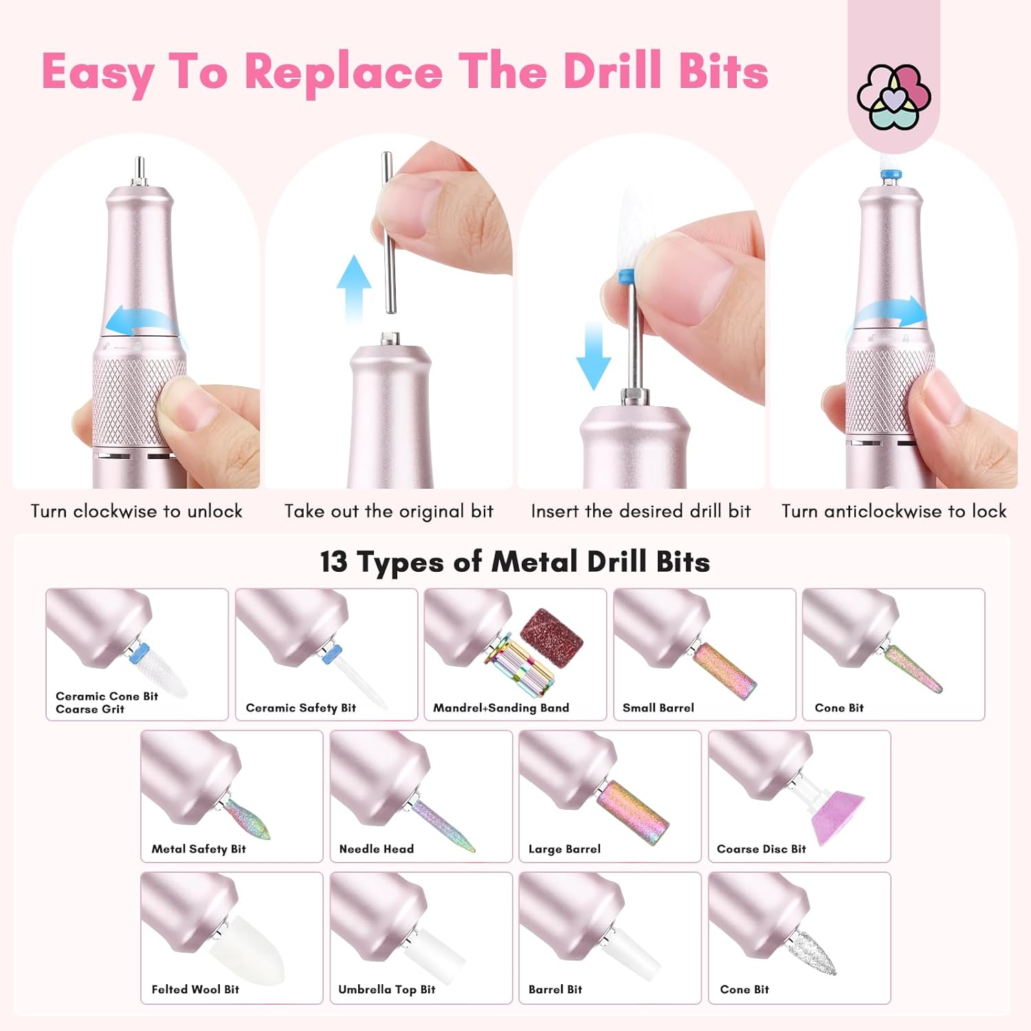 - Professional Nail Drill With Nail Bits: Saviland portable electric nail drill set comes with a nail drill machine and a nail drill pen, up to 40000RMP! Which can help you quickly remove nail art/dead skin/calluses/cuticles. Whether you use this product in a nail salon or at home, you can experience the most comfortable nail art