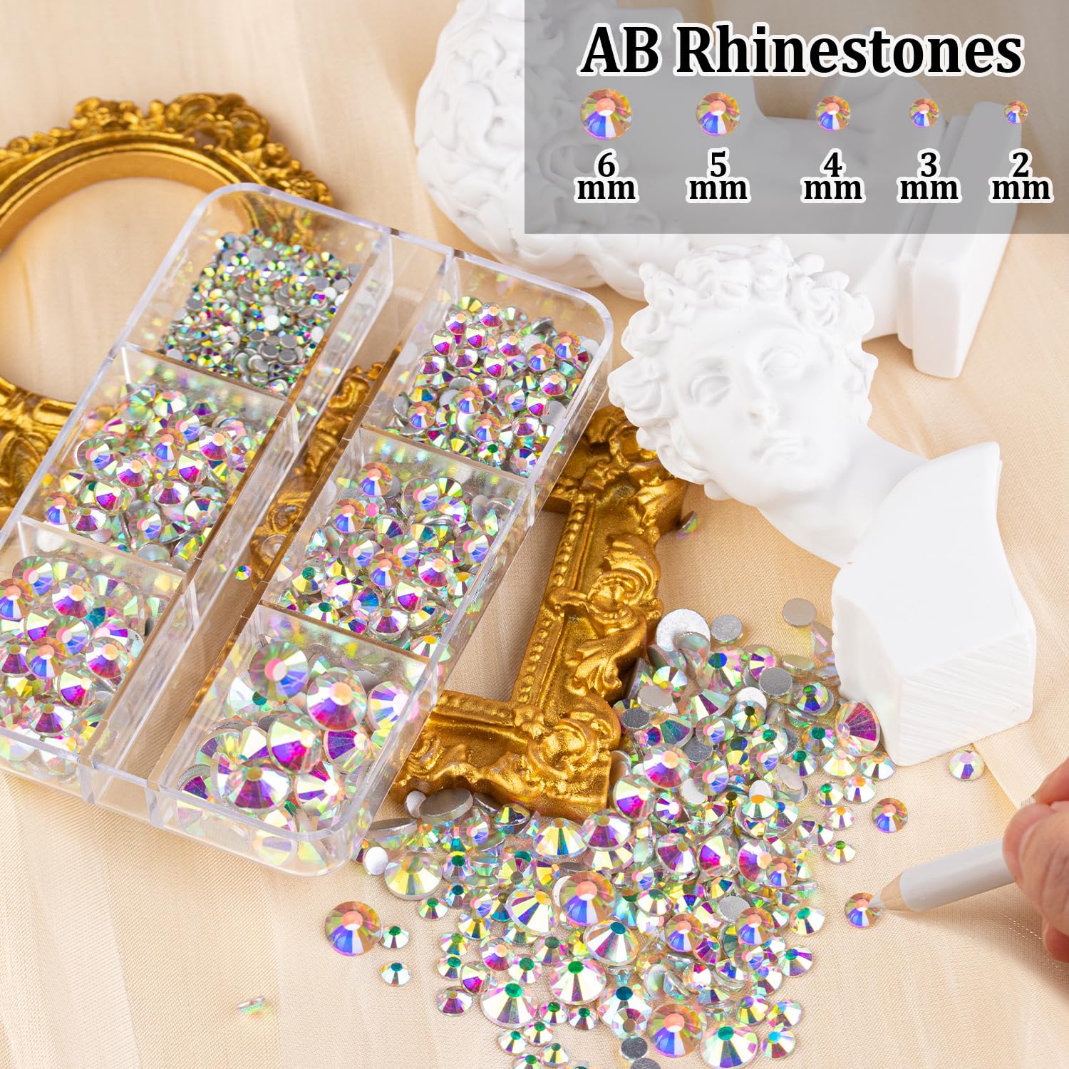 - ❤FACE DIAMONDS MAKEUP KIT--You will get 1 box of round flatbacked AB glass gems with different sizes(2/3/4/5/6mm), 1 box of round flatbacked mixed-colored gems with different sizes(2/3/4/5mm), 1 makeup glue, 1 pickup pencil, 1 dual-end dotting tool and 1 tweezers. This set is professional enough to satisfy your makeup needs and create your own beauty. The box is designed with independent lid for each grid which can help you store the gems and distinguish different sizes.