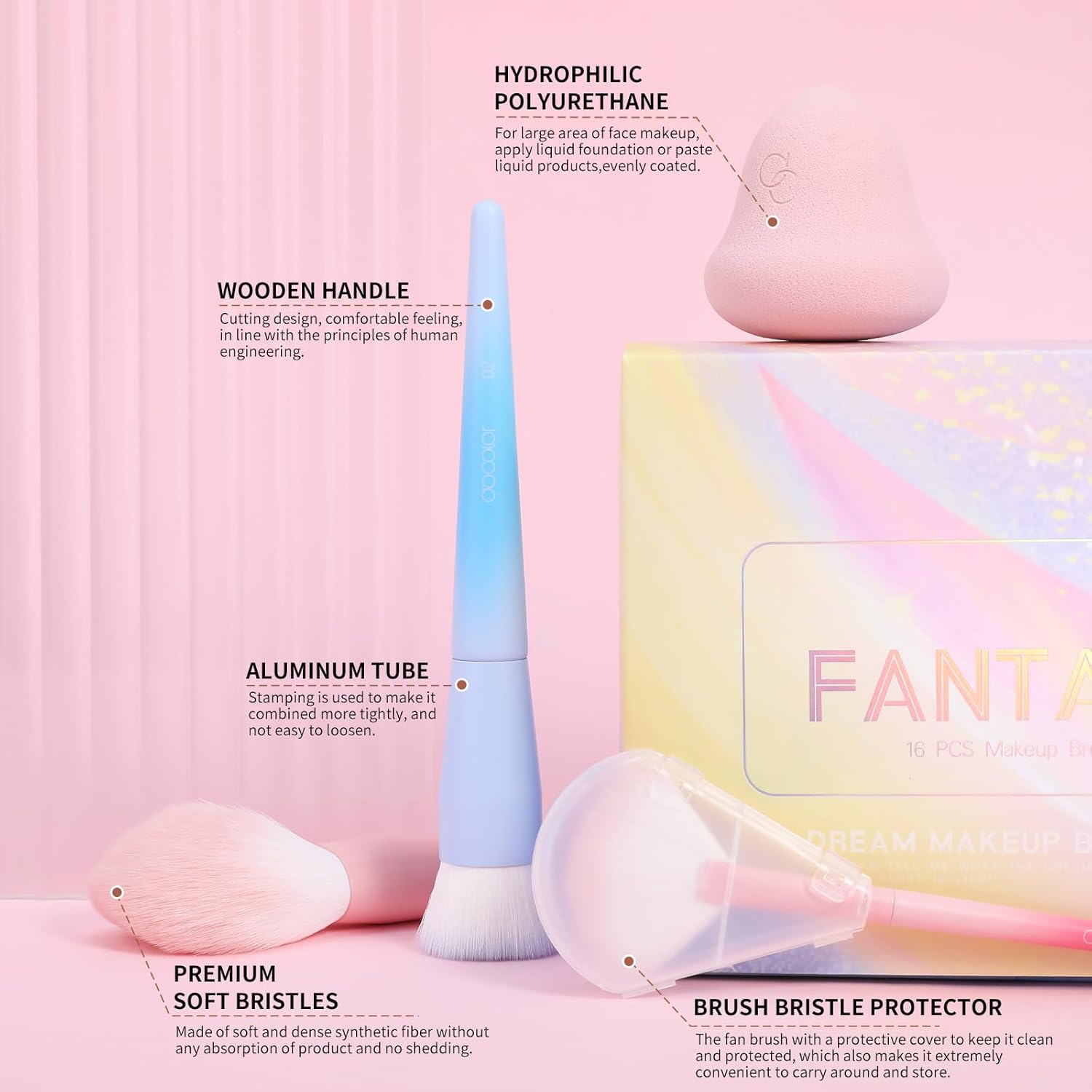 Docolor Makeup Brushes 16Pcs Makeup Brush Set with Makeup Bag Makeup Sponge & Brush Cleaning Pad Professional Face Powder Kabuki Foundation EyeShadow Concealers Brush Kit Gift Box Fantasy Series Ⅲ