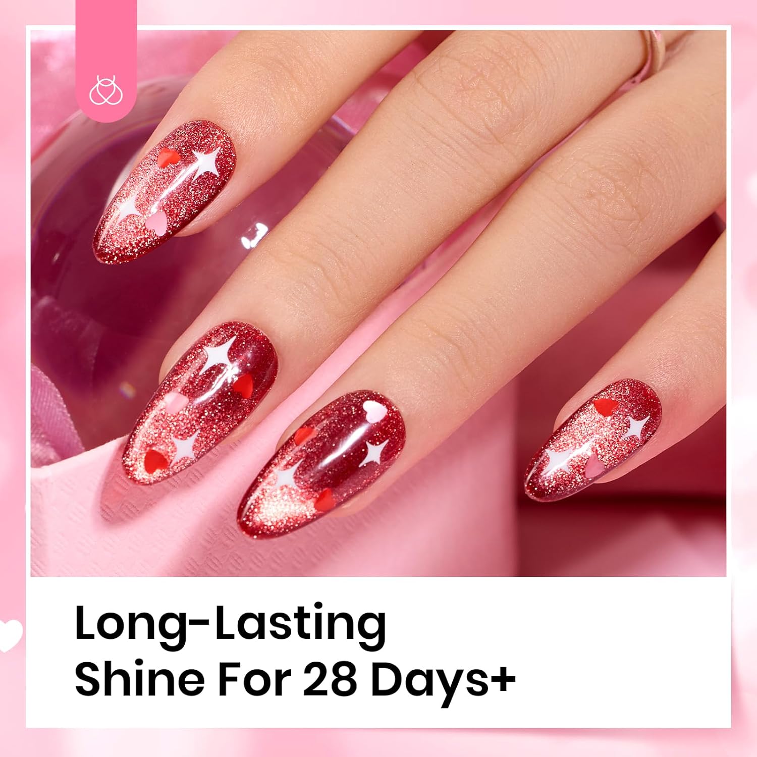 beetles Gel Polish 6Pcs Heart Star Reflective Glitter Gel Top Coat Set, Clear Pink Color Pastel Nail Polish No Wipe Top Coat Long Lasting Highly Shine Soak Off Uv Gel Art