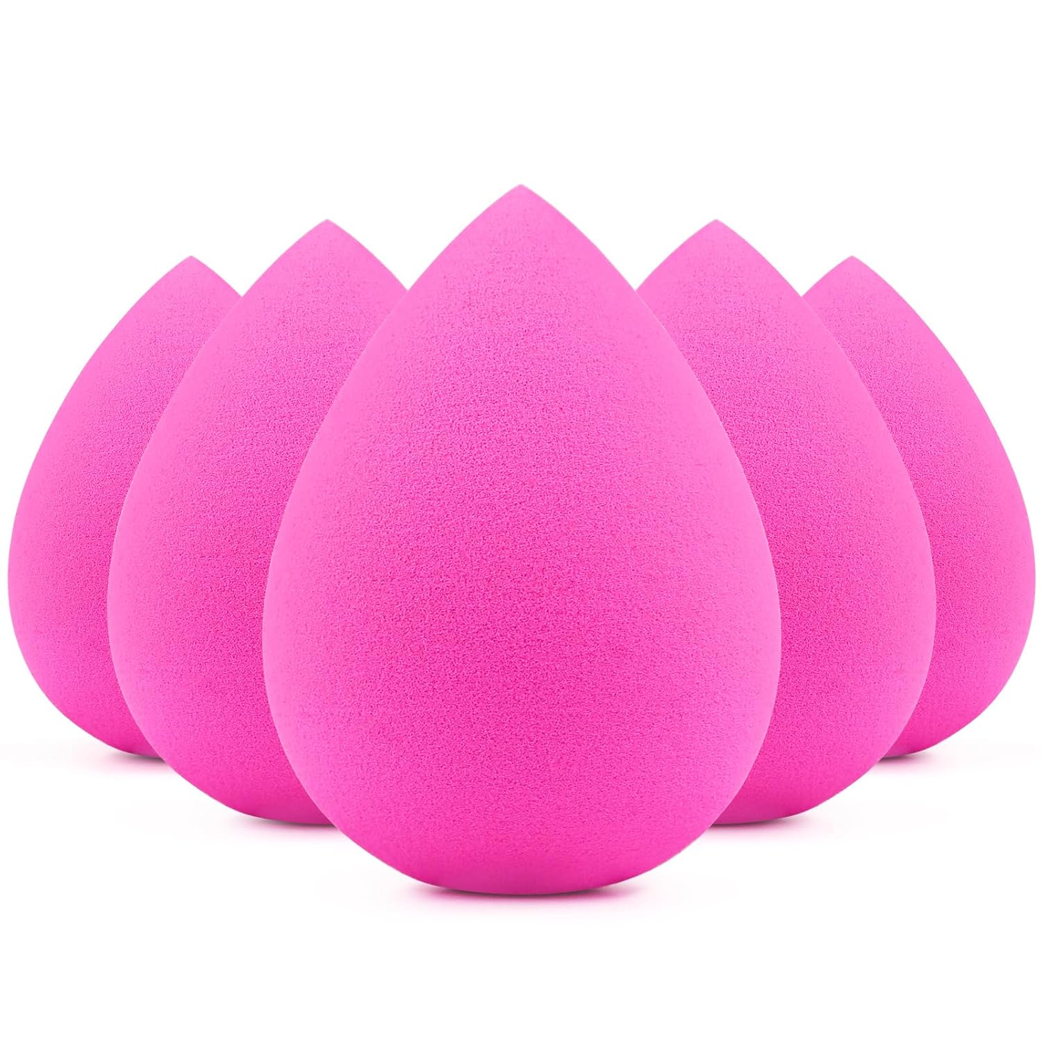 BEAKEY 5 Pcs Makeup Sponges, Latex-Free Beauty Sponge for Flawless Liquid, Cream, and Powder Application, Rose Pink Sponges