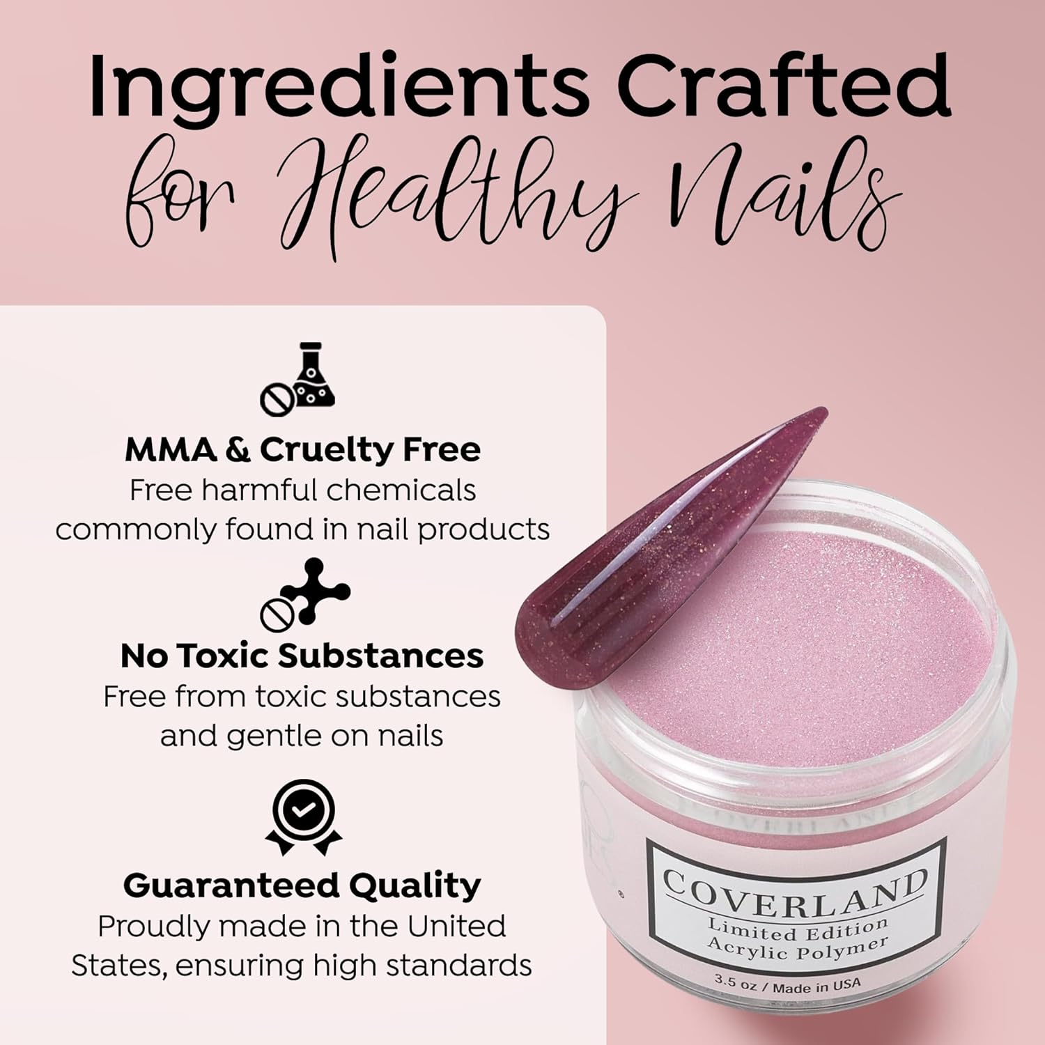 - βοΈππππ ππππππππ πππππ: The flexibility and adhesion properties of Coverland colored acrylic nail powder make it easy to shape nails with precision, and offers nice control for professionals who prefer to work with a polymerization rate of moderate to fast.