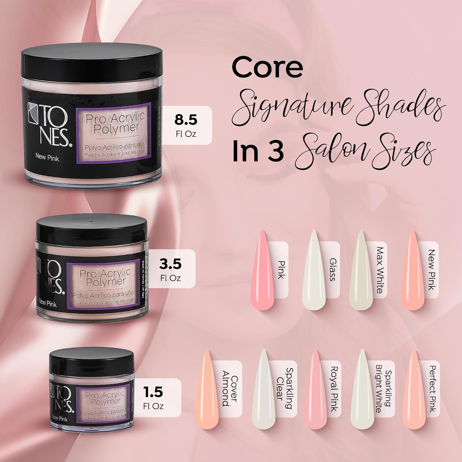 Tones Pro Acrylic Nail Powder, New Pink (Fresh Peach-Toned Pink), (1.5 Fl Oz) - Long-Lasting & Non-Yellowing Polymer for Salon Quality Nail Extensions & 3D Art