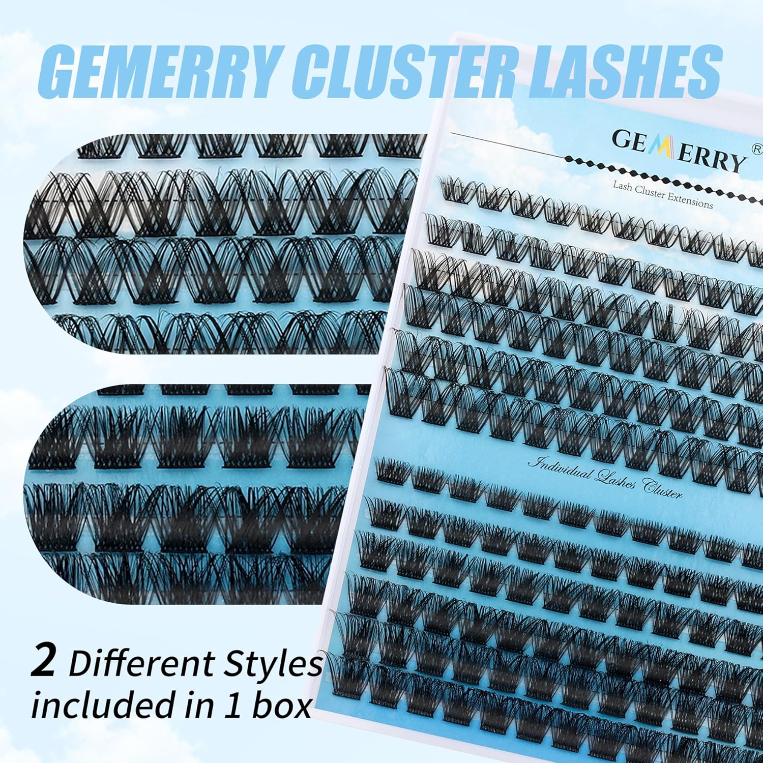 - ❤Two Styles&Mix Lengths In One Box: Each tray of cluster lashes contains two styles and multiple lengths, you can create your own unique lashes based on your eye characteristics, GEMERRY lash clusters offer a wide variety of choices to suit your preferences. You just need to spend several minutes creating cat eyes look , doll eyes look,natural look or dramatic look depending on occasions and your mood.