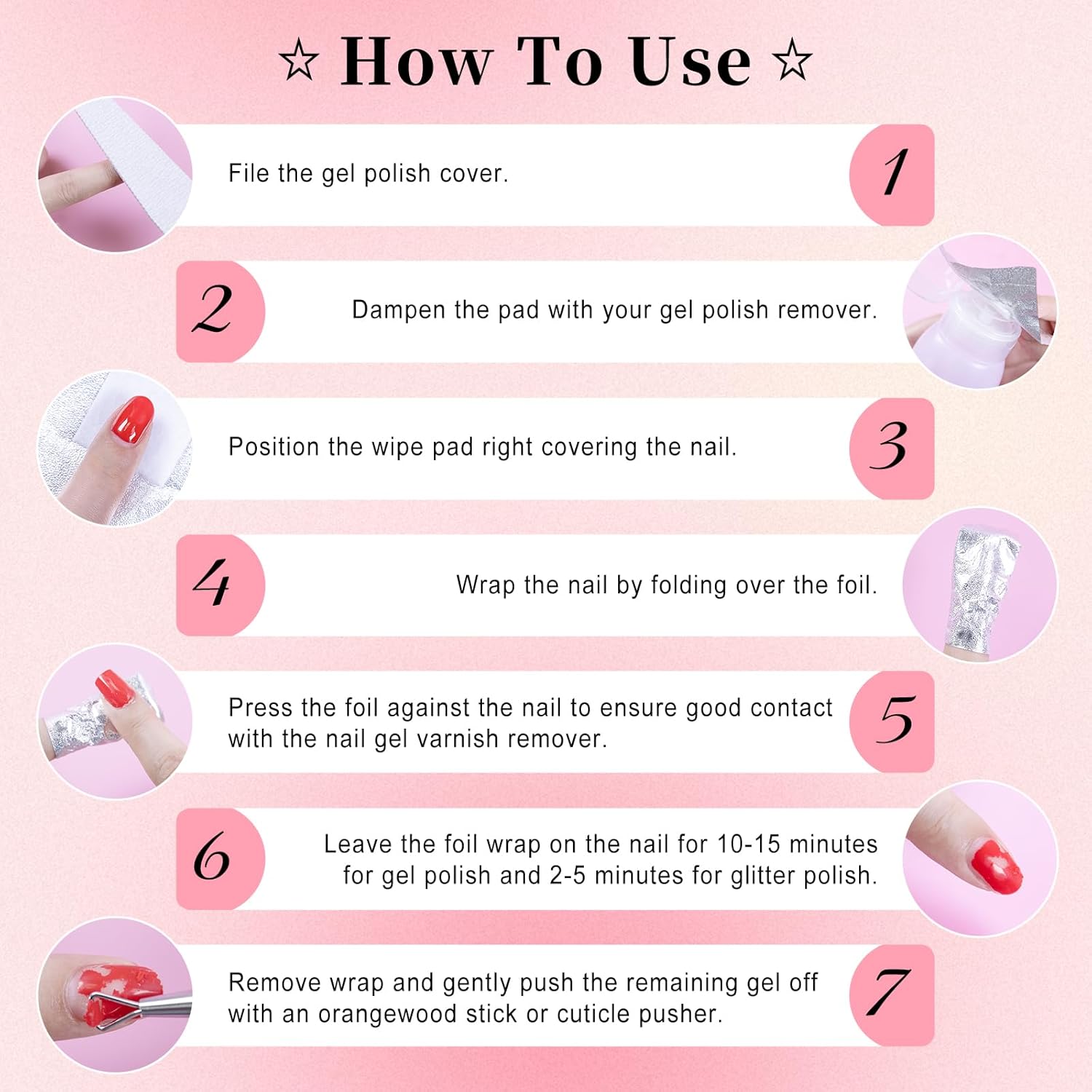 - SAFE TO USE: Disposable single-use foil wraps ensure sanitary and hygienic gel polish removal. These gel removers work quickly for gel polish, acrylic nails and UV gel, which makes your acrylic nail removing sessions down from 30 minutes to 10 minutes or less. Please note that Acetone remover is not included