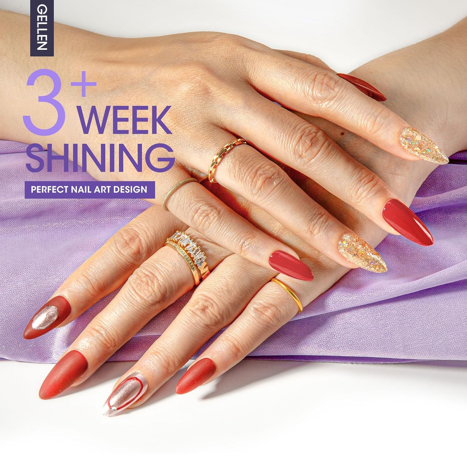 - 18ml Gel Base and Top Coat: Gellen Gel Top Coat Set contains 1*18ml base coat, 1*18ml glossy top coat, 1*18ml matte top coat. One set can meet your basic daily nail art designs