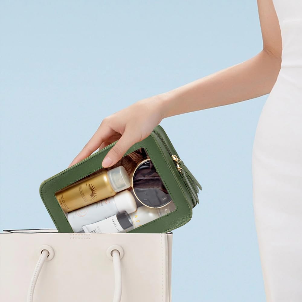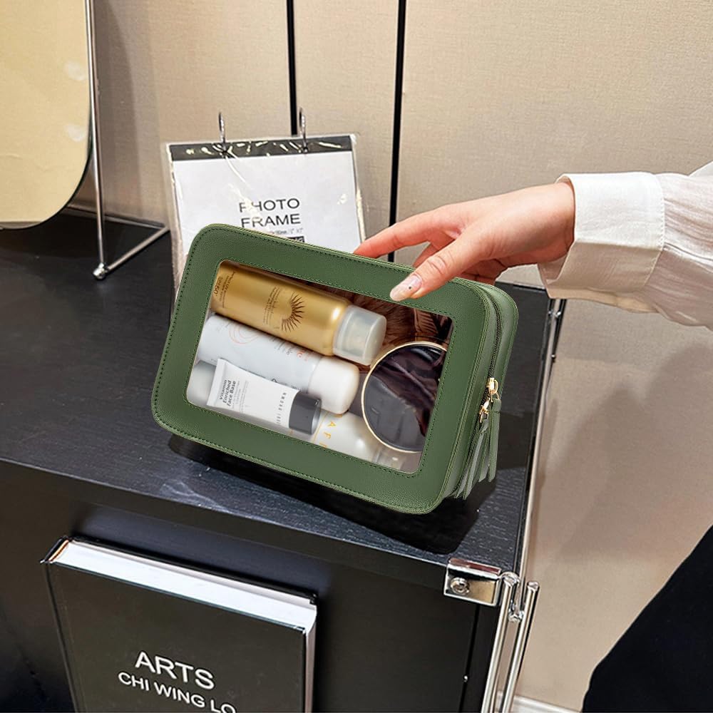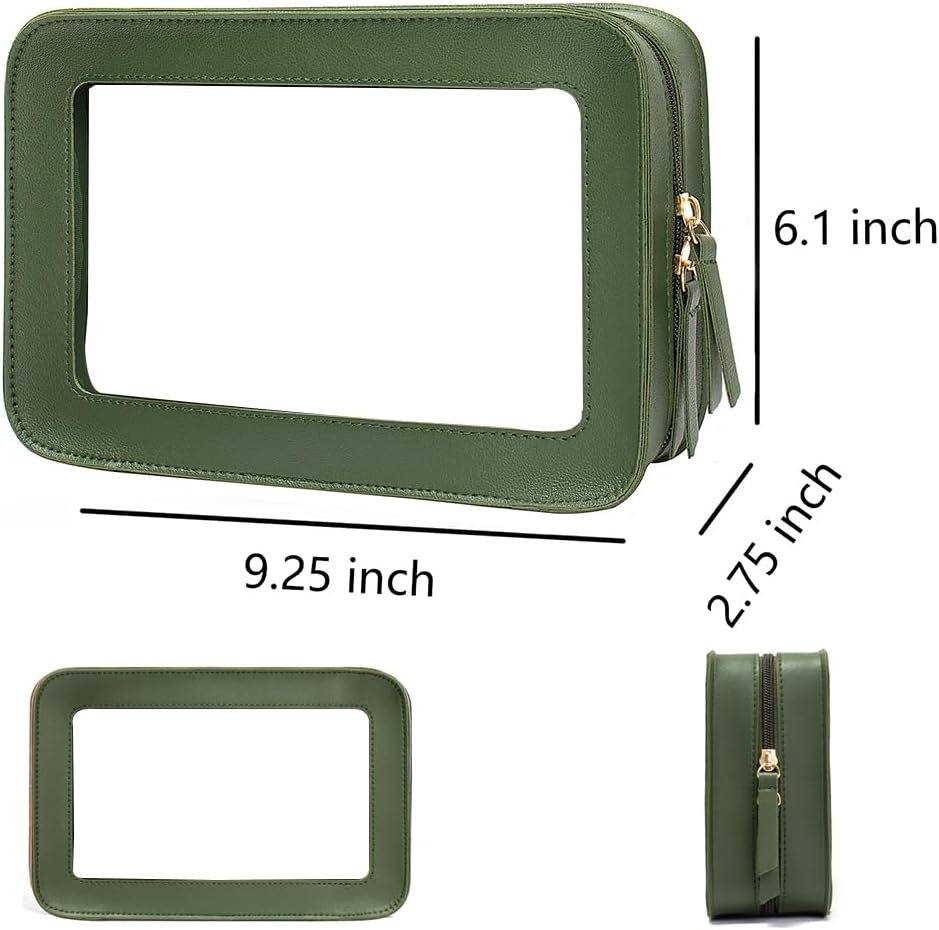 - Clear Design: Our clear toiletry bag is sleek and minimalistic look for your makeup accessories collection. And is designed with a clear PVC window,all items are clear at a glance, and you can quickly choose the cosmetics you need. Size:9.44“*6.1”*2.75“