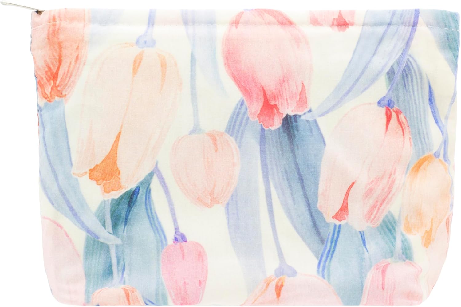Floral Makeup Bag Large Cotton Zipper Pouch for Purse Travel Canvas Make Up Organizer for Women Cosmetic,Tulip Pink