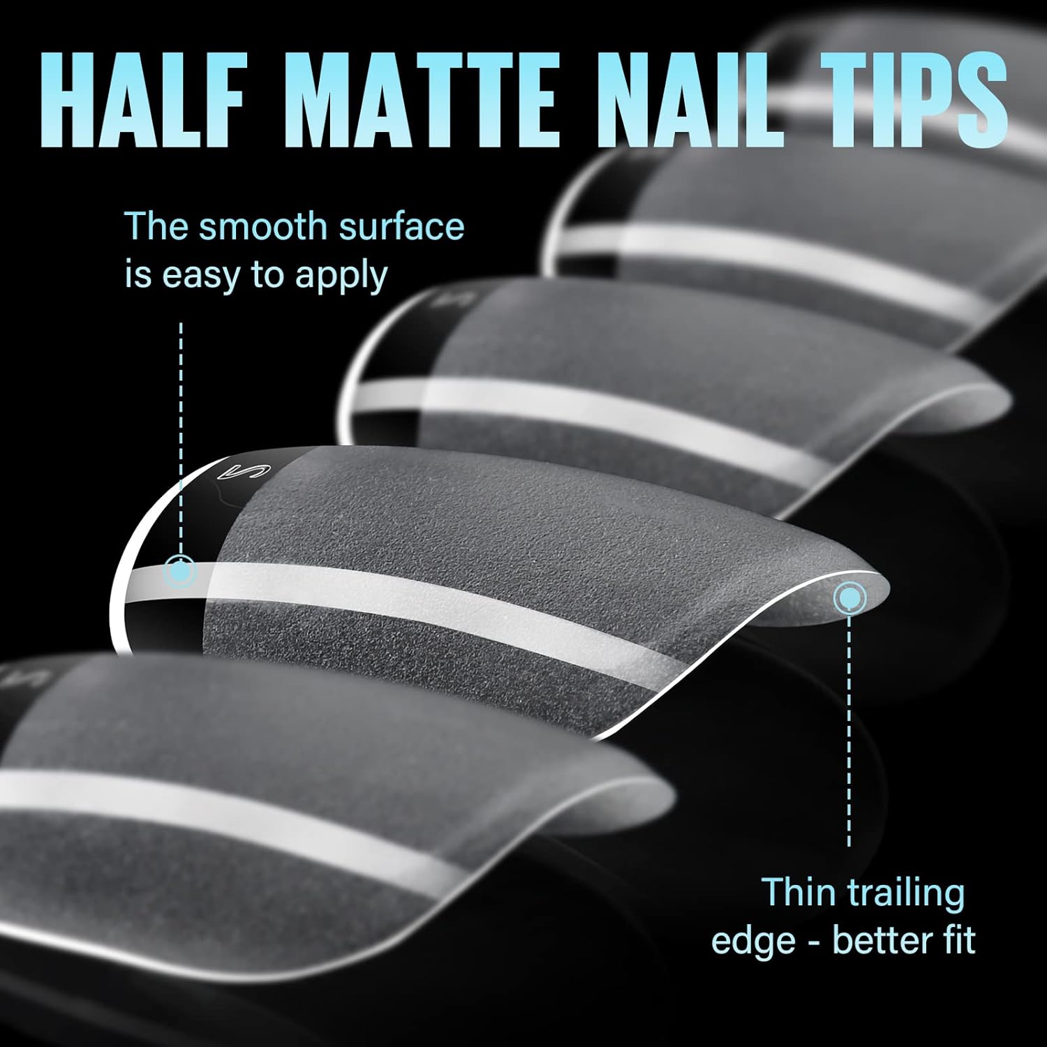 - Half Matte Extra Short Square Nail Tips: TOMICCA introduces a half matte design that eliminates the need for nail buffing. This reduces damage to your natural nails, increases the grip between the false nail tips and your natural nails, and promotes healthier and sturdier results.