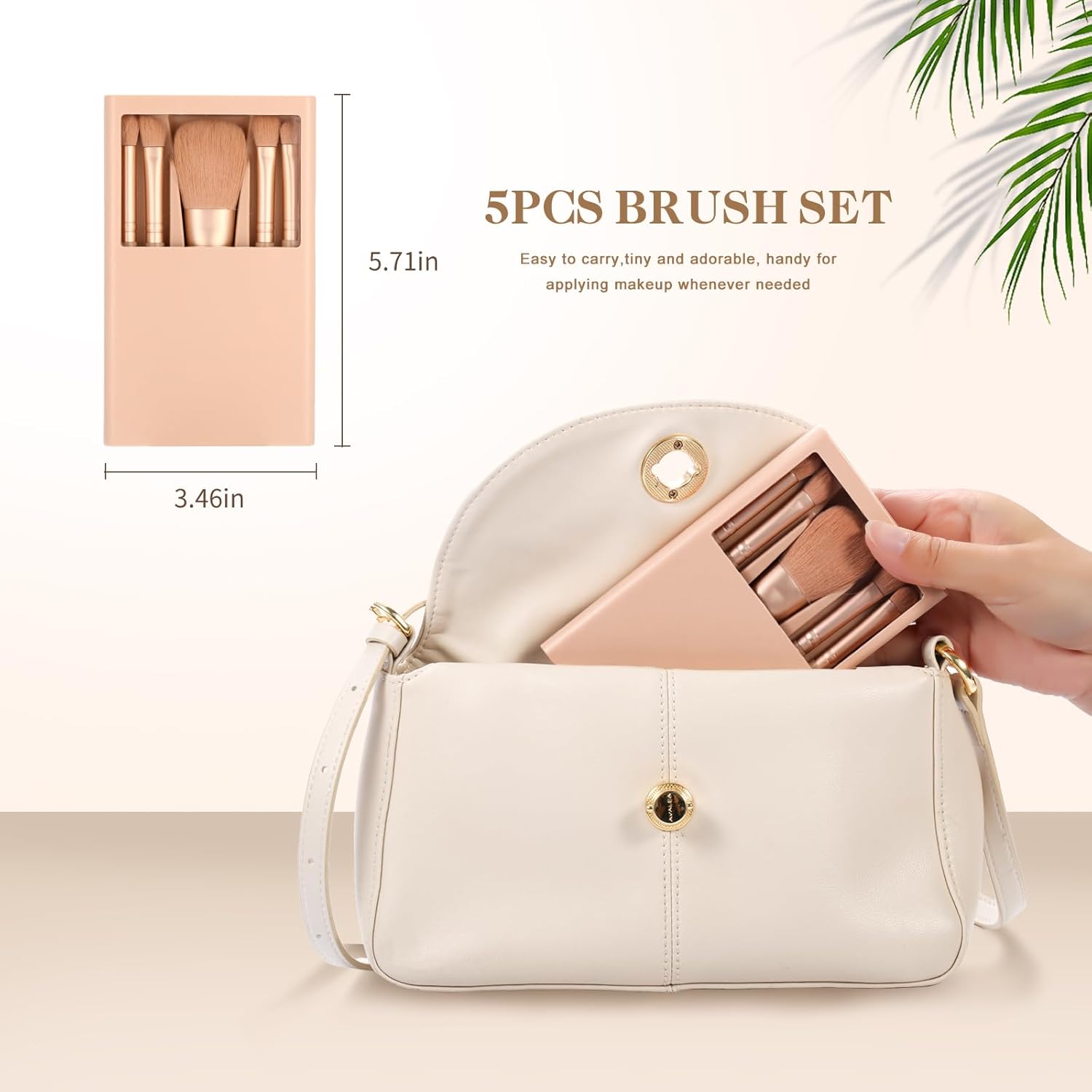 - ăIRYCSSCE TRAVEL MAKEUP BRUSHăThis set includes Full blush brushă Nose Shadow Brushă defining crease brushăEye shadow Brushă Classic Eye shadow Brush and a makeup brush storage box with a built-in vanity mirro. travel make up brushes set Equipped to meet the basic needs for everyday makeup. The makeup brush set is palm-sized, making it convenient for on-the-go use