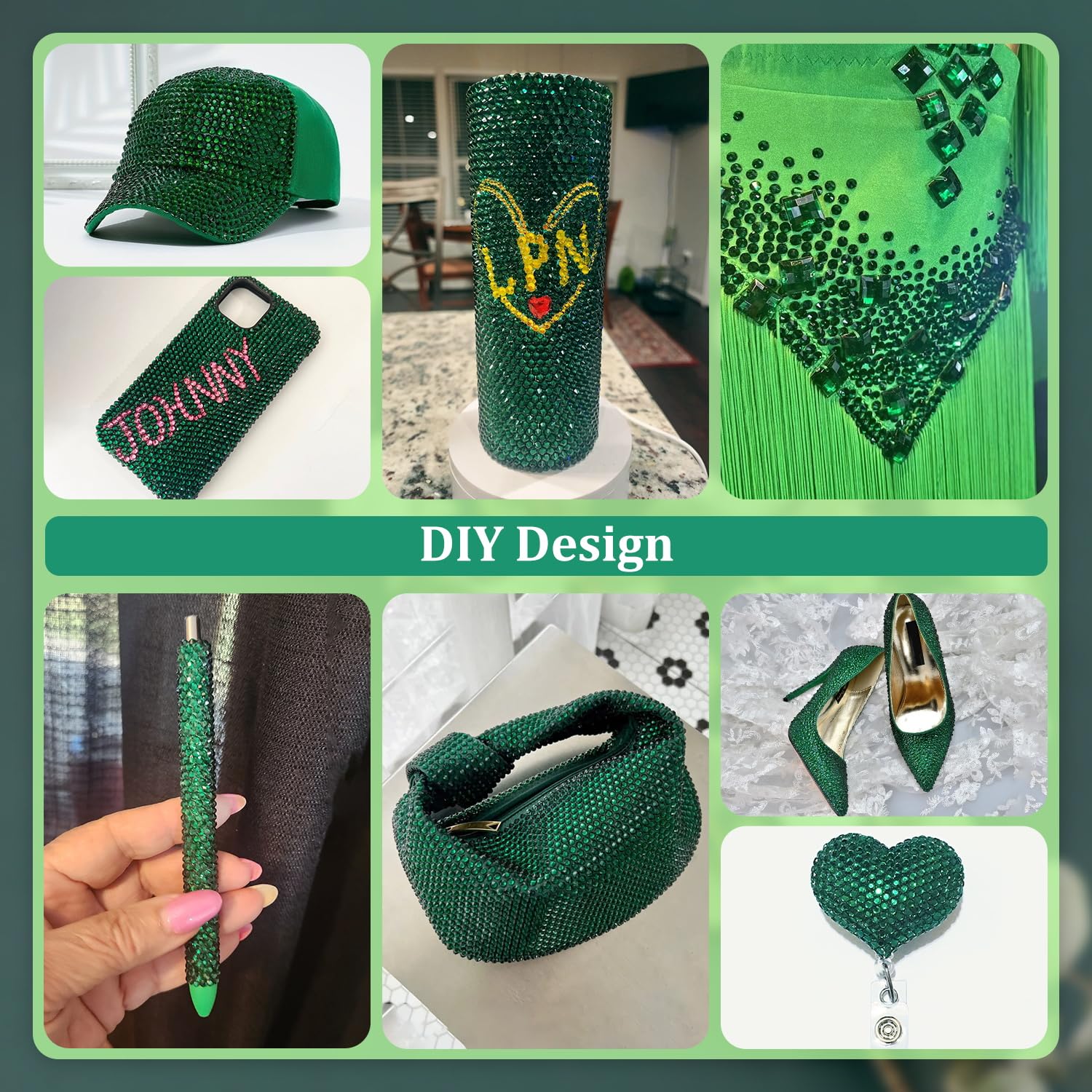 Resin Rhinestones for Crafting, 1 Box Dark Green Multi Sizes Flatback Bedazzling Crystals for Crafts Nail Art Deco, Non Hotfix Gems Charms for Tumbler Shoes Clothing Fabric Face Makeup
