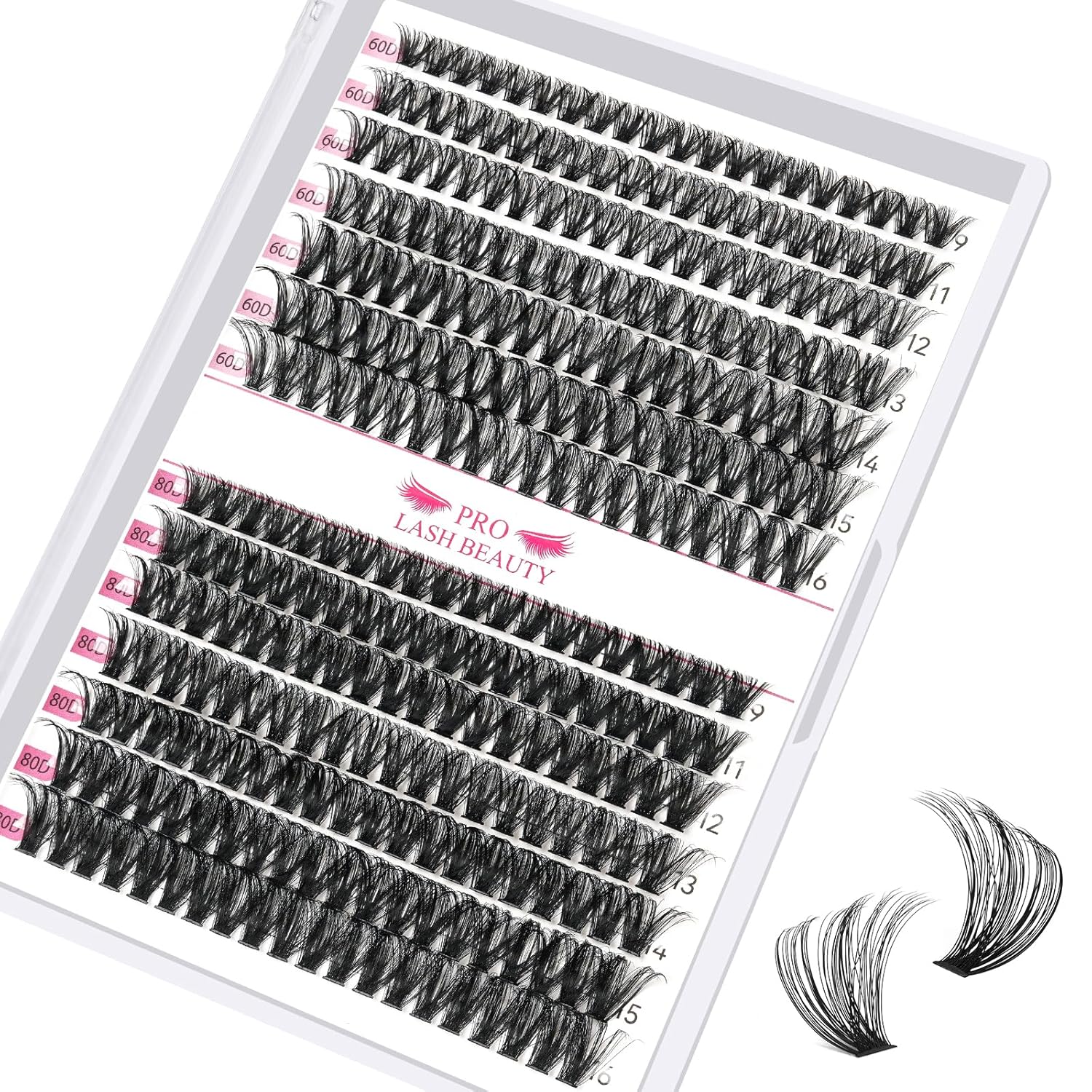 280 Pcs Individual Lashes 60D+80D Mixed 0.05 Lash Clusters 14 Rows that Look Like Eyelash Extensions DIY Lash Extension Self Application At Home (60+80-C-9-16mix)