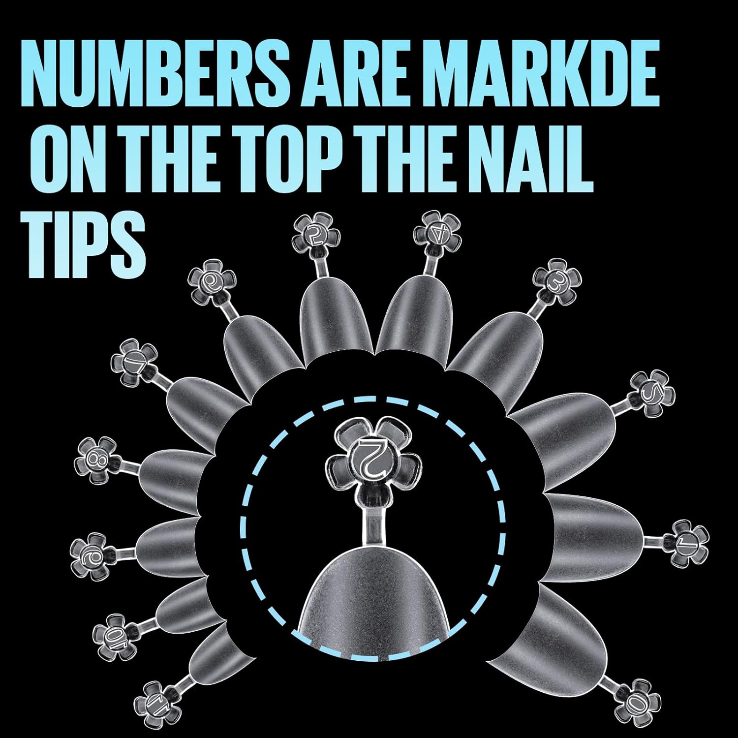 - 【Multiple Size Options】TOMICCA long oval nail tips come in a generous pack of 510 pieces, including 12 different sizes, our fake half cover nail tips can give you more options. And there are numbers marked on the fingertips, you can quickly find you sizes. No c curve nail tips are easy to operate, whether you're a nail enthusiast or a professional nail technician, this pack will last you a long time.
