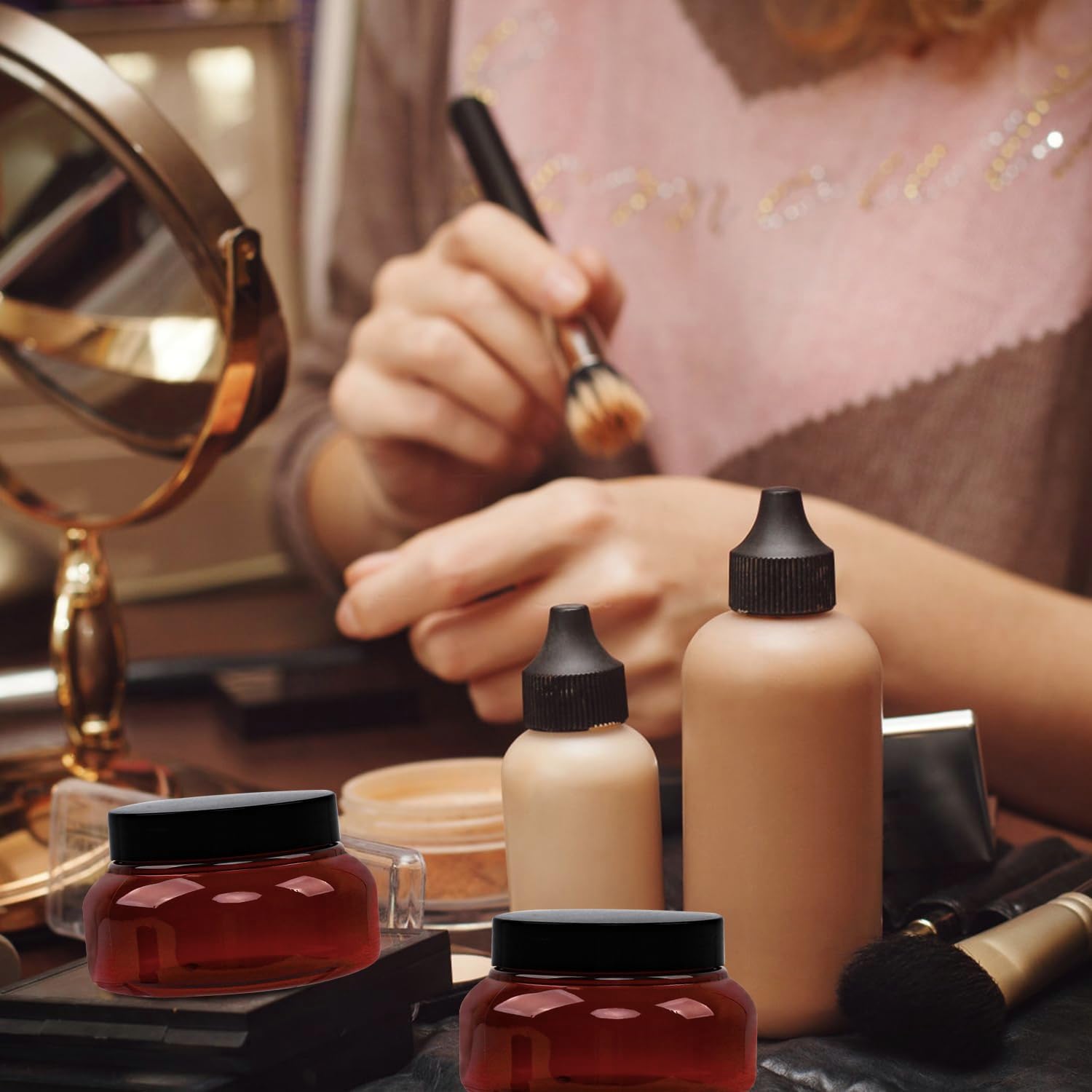 Amber Plastic Jars with Lids, 12 Pack Brown Body Scrub Jars Empty Refillable Containers Round Low Profile Samples Jars for Lotion, Body Butter, Sugar Scrub, Cream (7 OZ)
