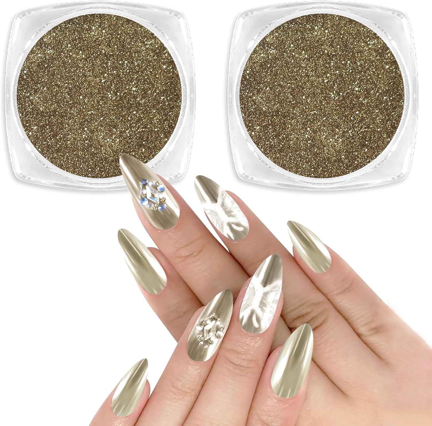 - Wide Usage: Allstarry Chrome Nail Powder Set is with 2 colors, which can perfectly match with chameleon flakes, nail charms, french manicure, 3D shell nails and etc, meeting your needs for different works. Whatโs more, the chrome powder for nails can also be applied on UV gel nails, acrylic nails, natural nails, and it can be mixed into nail gel polish or chrome nail polish for its solvent resistance.