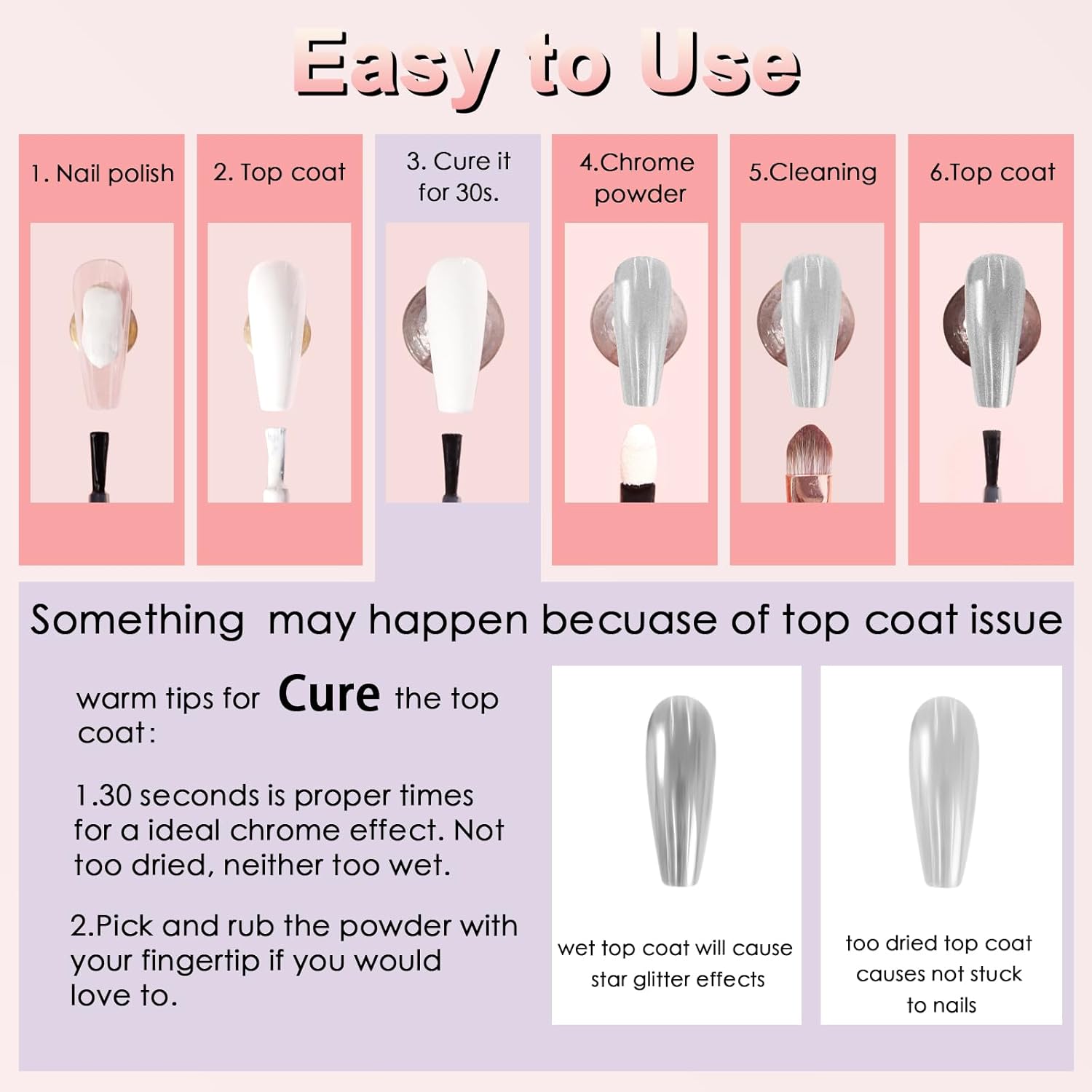 - Wide Usage: Allstarry Chrome Nail Powder Set is with 2 colors, which can perfectly match with chameleon flakes, nail charms, french manicure, 3D shell nails and etc, meeting your needs for different works. Whatโs more, the chrome powder for nails can also be applied on UV gel nails, acrylic nails, natural nails, and it can be mixed into nail gel polish or chrome nail polish for its solvent resistance.