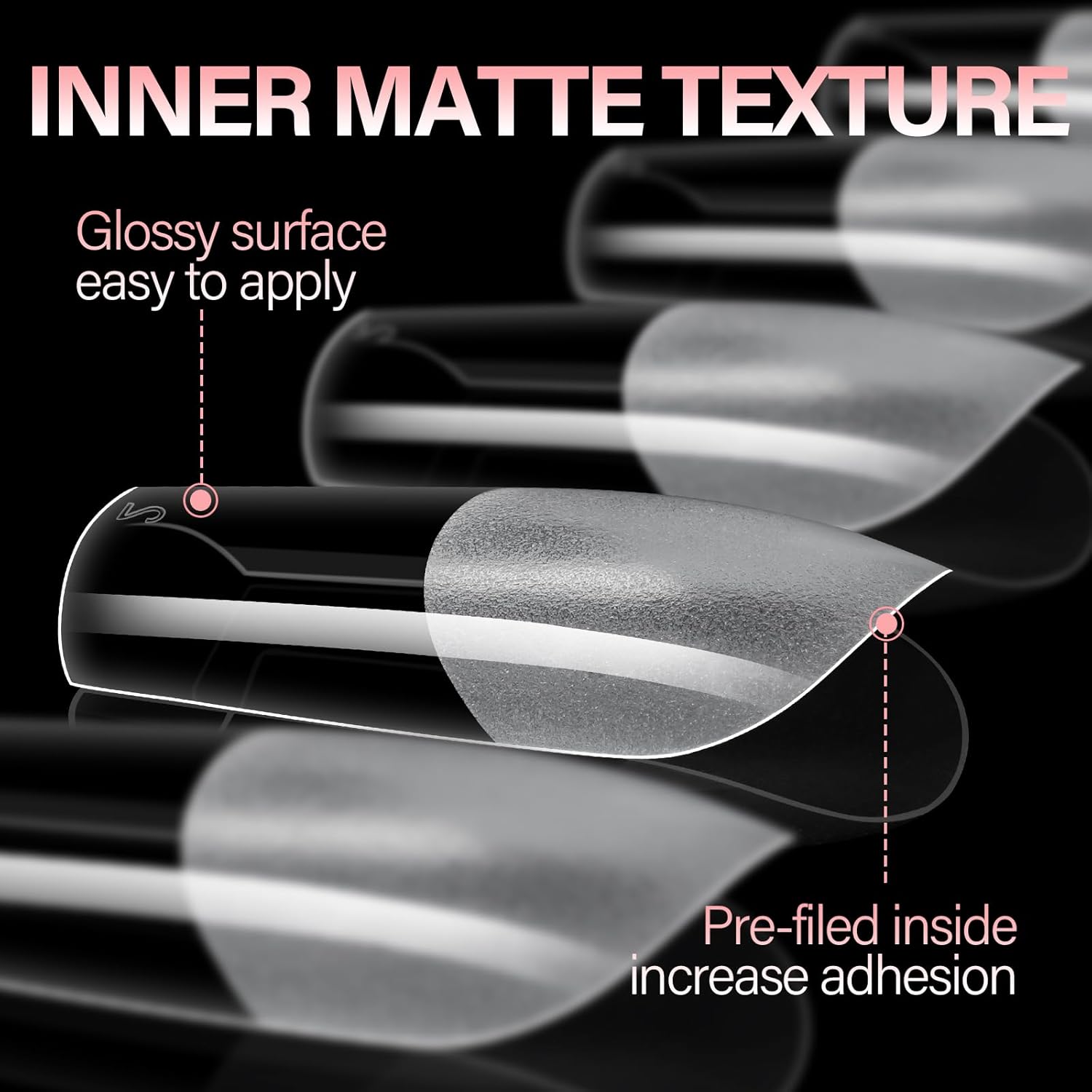 AILLSA Medium Square Nail Tips Full Cover Half Matte Tips Nail Clear Gelly Pre-Shaped Nail Tips Press On False Nail Tip Extension for Home DIY Manicure Salon 216PCS 12 Sizes