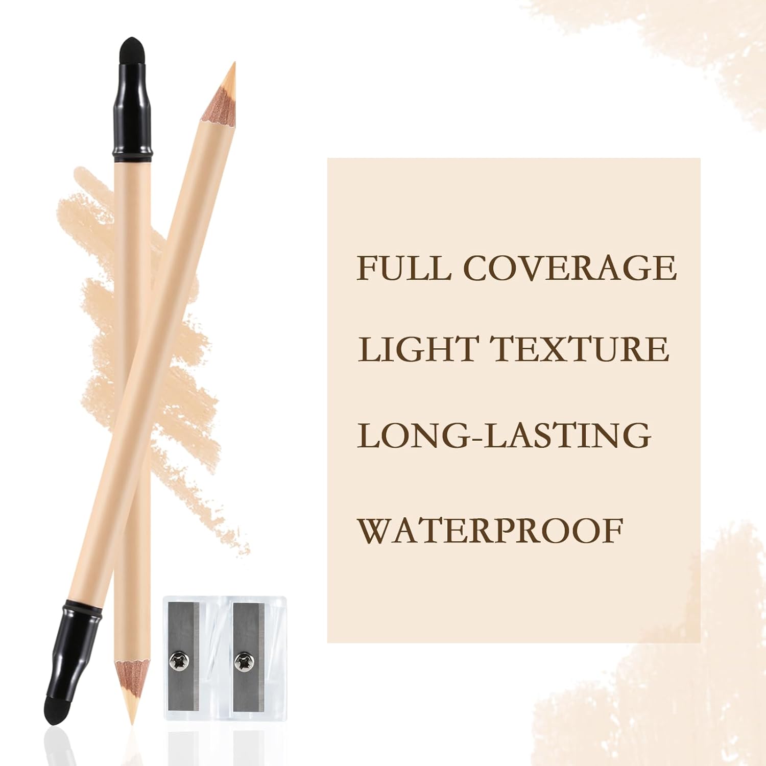 Concealer Pencil with Sharpner,Full Coverage,Waterproof Under Eye Concealer Stick for Dark Circles,Blemishes,Aging Spots,Acne,Freckles