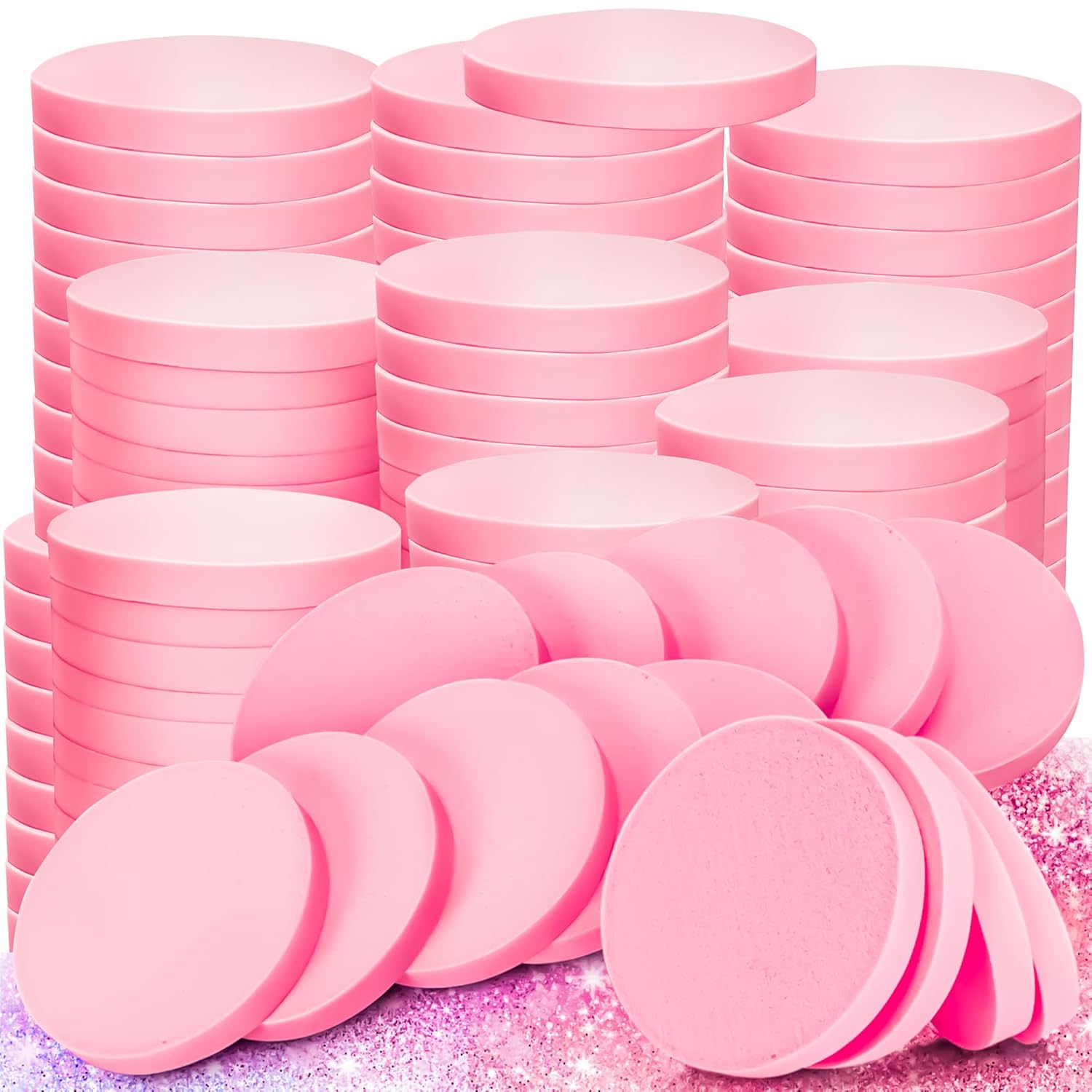 MotBach 100 PCS Pink Round Makeup Sponge, Cosmetic Sponge Round Foam Pad Eye Facial Powder Puff, Beauty Makeup Foundation Powder Blender for Women Lady All Skin Types Wet and Dry Dual Use
