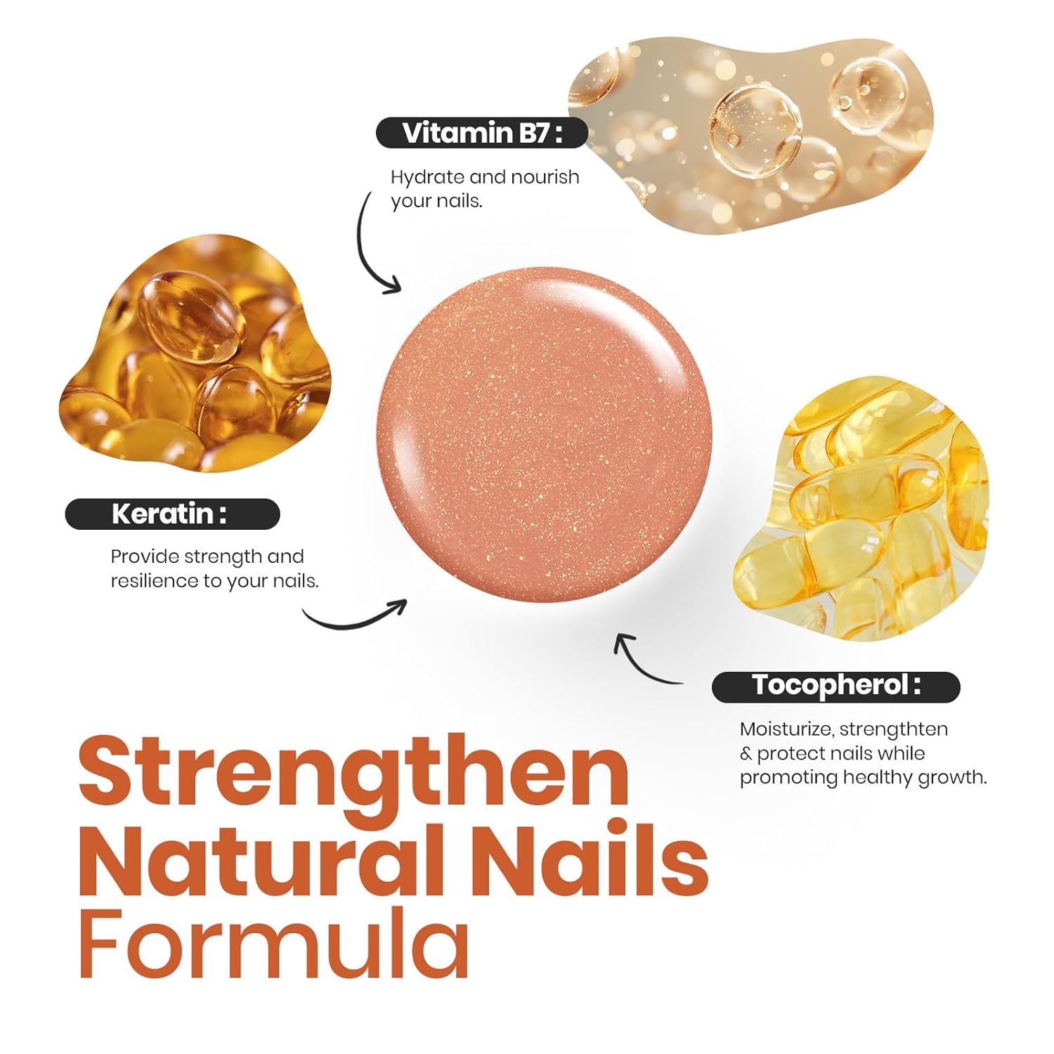 - Nail-Boosting Ingredients: Packed with keratin, vitamin B7, and tocopherol, this gel nail polish helps increase nail thickness and strength, speeding up recovery for healthier-looking nails.