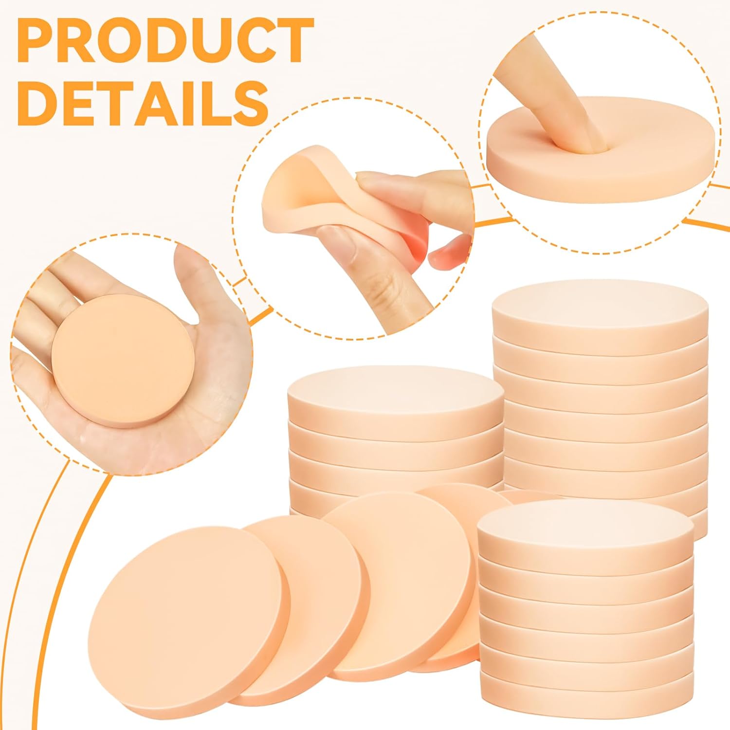 - Size: These makeup sponges for foundation are approximately 2.17"/55mm in diameter and 0.28"/7mm thick, lightweight and easy to carry around