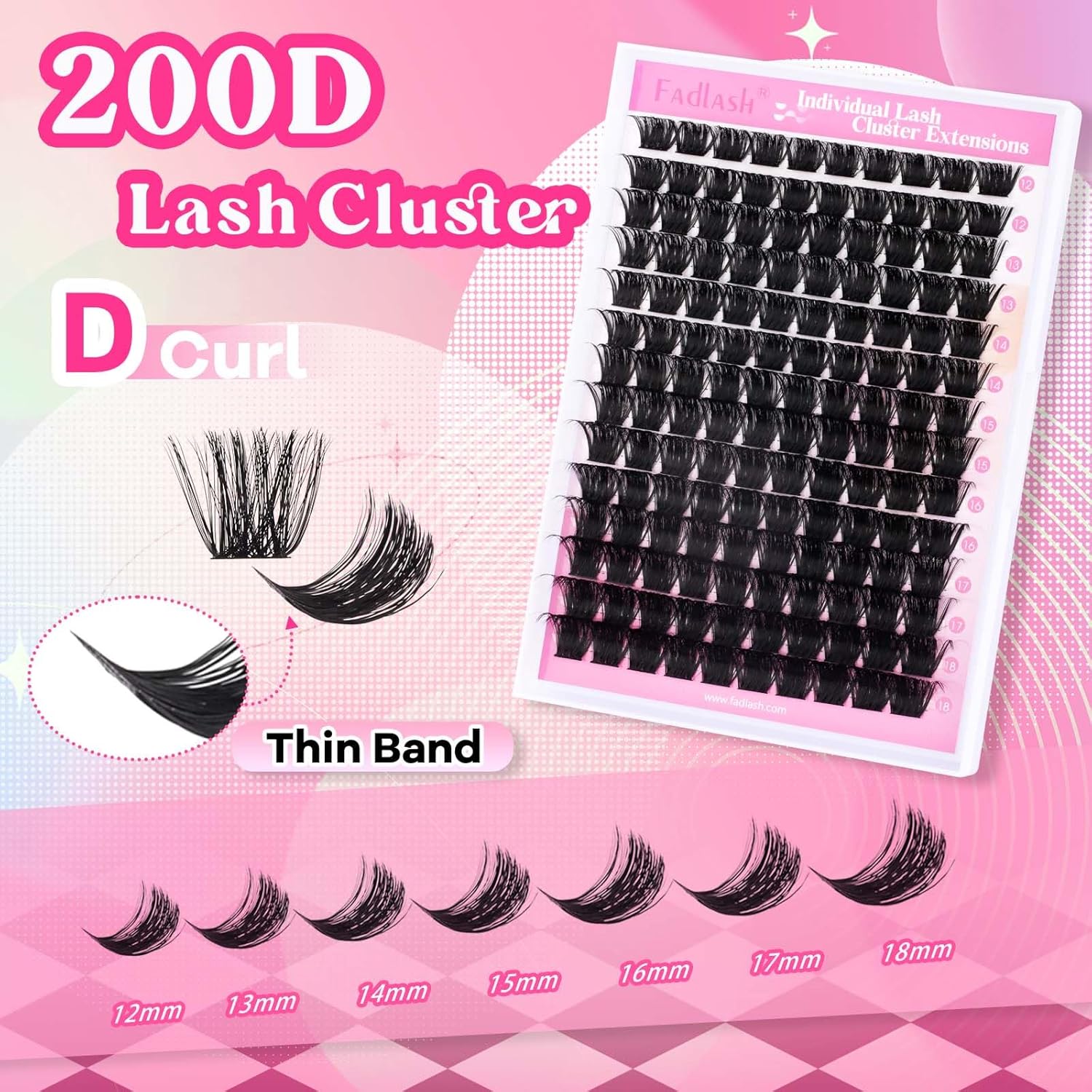 FADLASH Cluster Lashes D Curl Wispy Individual Lashes DIY Eyelash Extension Natural Look Reusable Fluffy Cluster Eyelash Extensions Self Application at Home (200D-0.07D-12-18MIX)