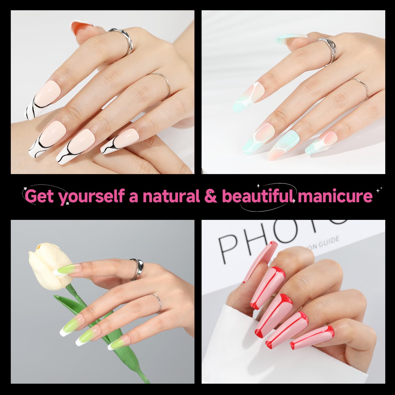 - ❤️【Natural Fit Effect】 The long coffin gel nail tips feature “ Thin back edge, thick front edge”. The thinner back edge can make the full cover nail tips fit your nails better. Our tips have smooth edges with a gentler curve, making them fit comfortably against the nail bed without feeling tight. They maintain color well, don’t separate or peel, and make the nails look more natural.
