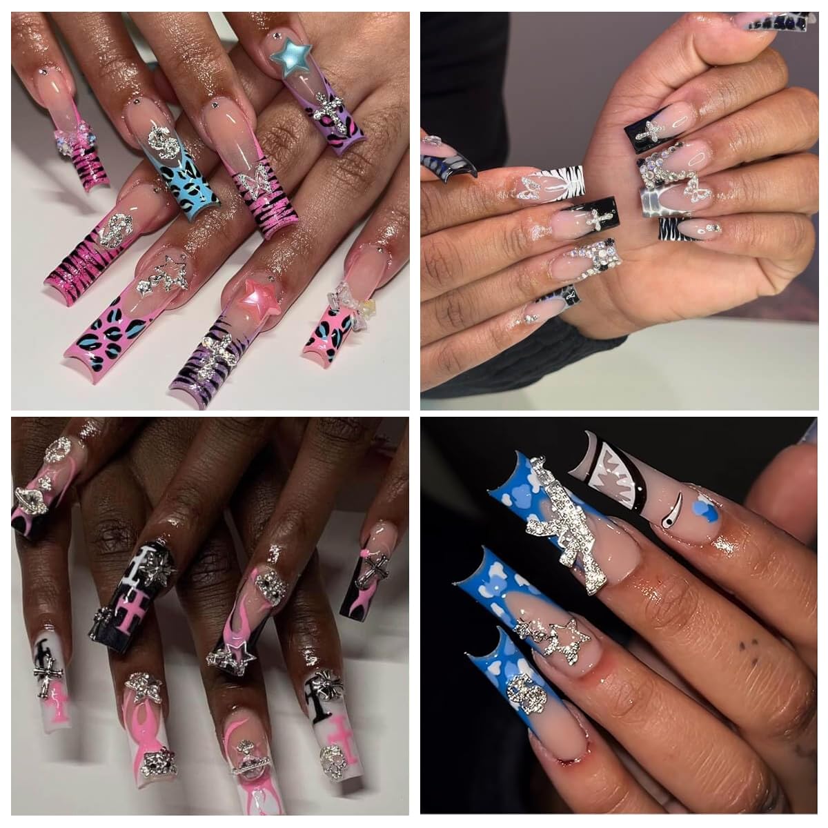 - Each set includes a variety of nail charms, perfect match with other nail art charms design. Just clean the nail surface and apply nail glue, then put these bling nail charms on the nail and stick them to the nail, which is simple and time-saving.