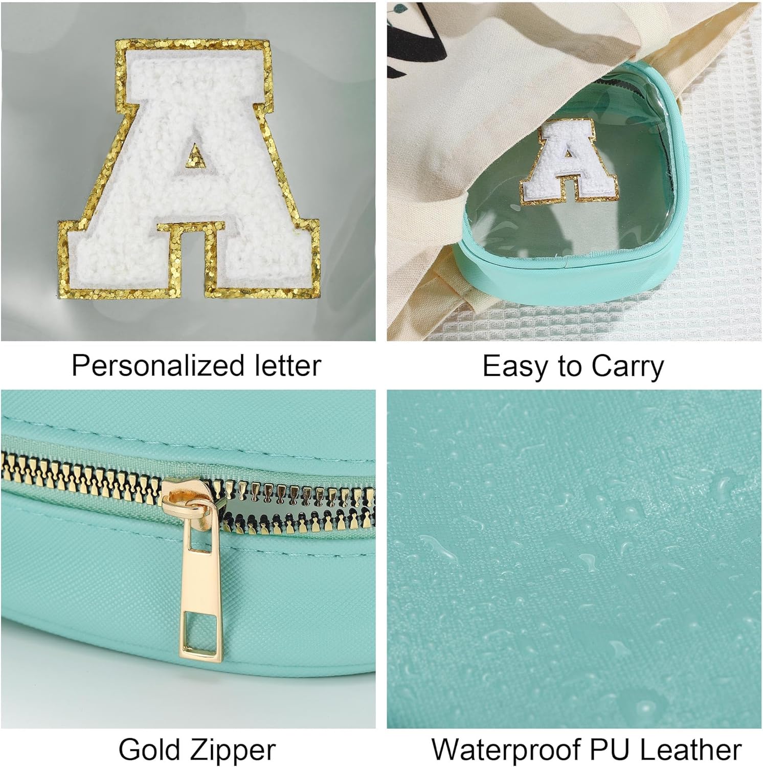 YOOLIFE Initial Make Up Bag Travel Toiletry Bag, Clear Makeup Bag Preppy Cosmetic Bags Organizer Travel Essentials Gifts for Women Teen Girlfriend Teacher Mom Birthday Gifts Small Makeup Bag Blue A