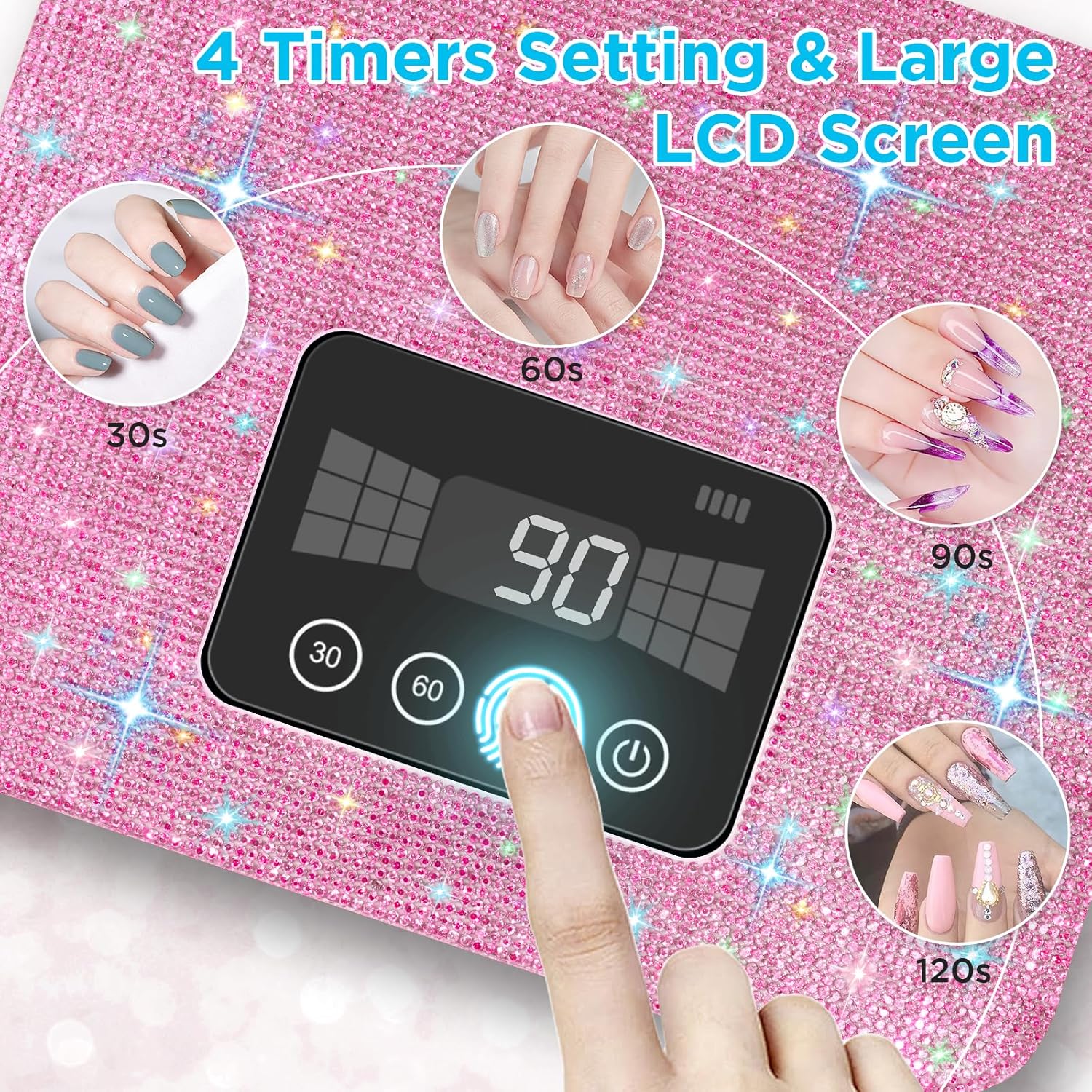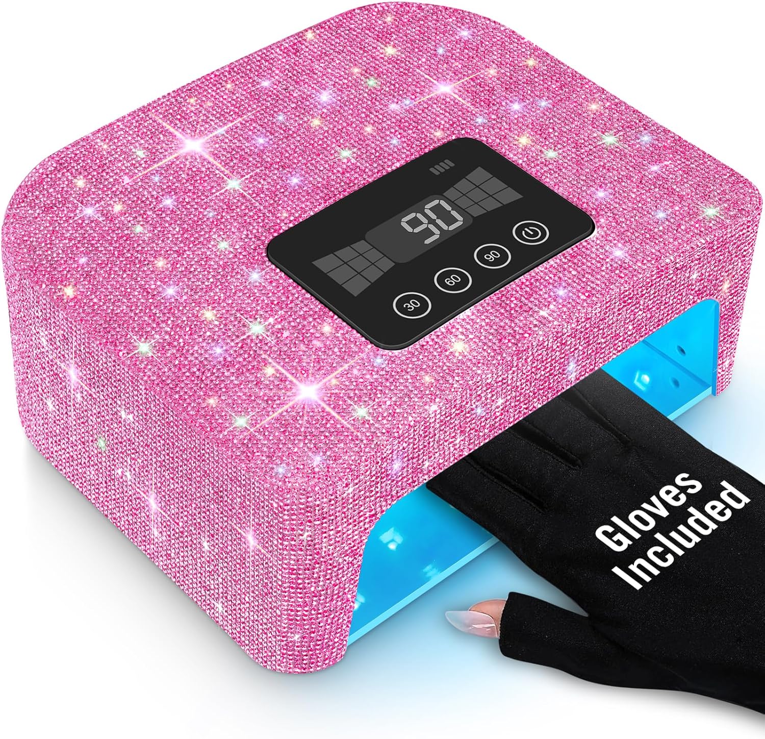 Cordless UV Nail Lamp, Rechargeable UV Light for Gel Nails, LED Nail Lamp with 4 Timer Modes, Gel Nail UV Light Decorate with Sparkling Nail Rhinestones